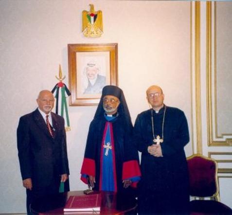 O Embaixador da Palestina em Buenos Aires, Argentina, Suhail Hani Daher Akel, S.B. Athanasios e S.E.R. Mar Valerian de Silio (Alfredo Mingolla-Montrezza)