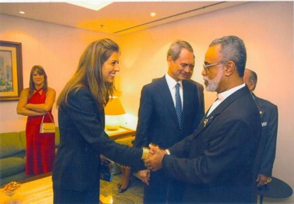 S.B. Athanasios colocando a medalha Sérgio Vieira de Mello, ao Senador da República Paulo Otavio (esqª), e cumprimentando a neta do falecido Presidente Jucelino Kubitchek (dirª)