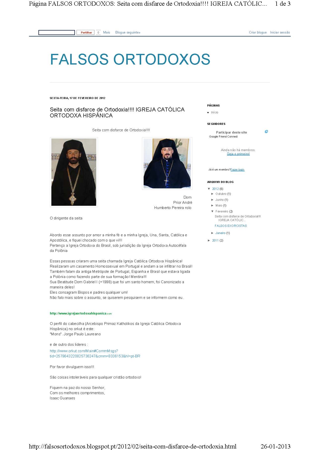 Seita com disfarce de Ortodoxia!!! Igreja Católica Ortodoxa Hispânica