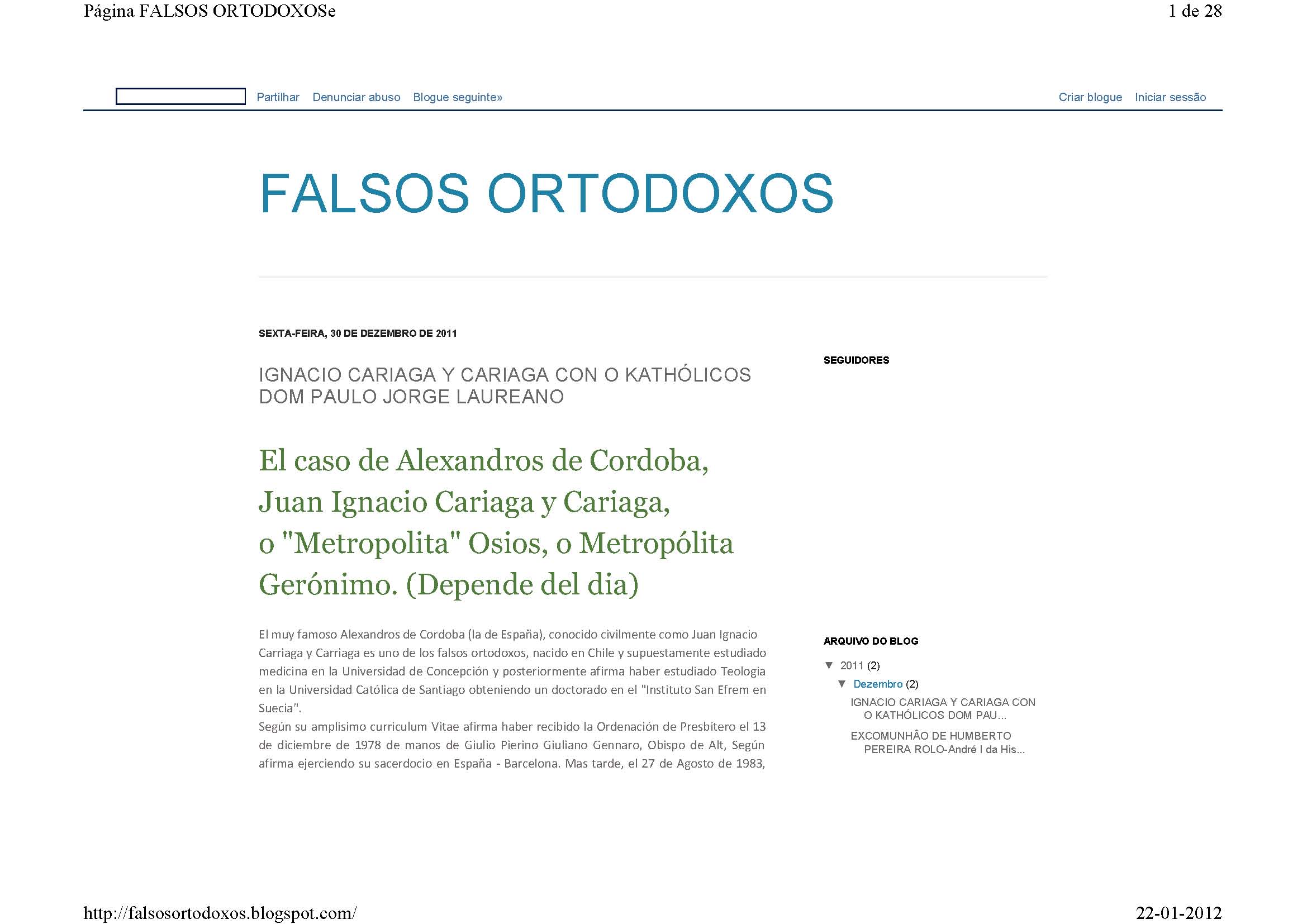 El caso de Alexandros de Cordoba, Juan Ignacio Cariaga y Cariaga, o "Metropolita" Osios, o Metropólita Gerónimo. (Depende del dia)