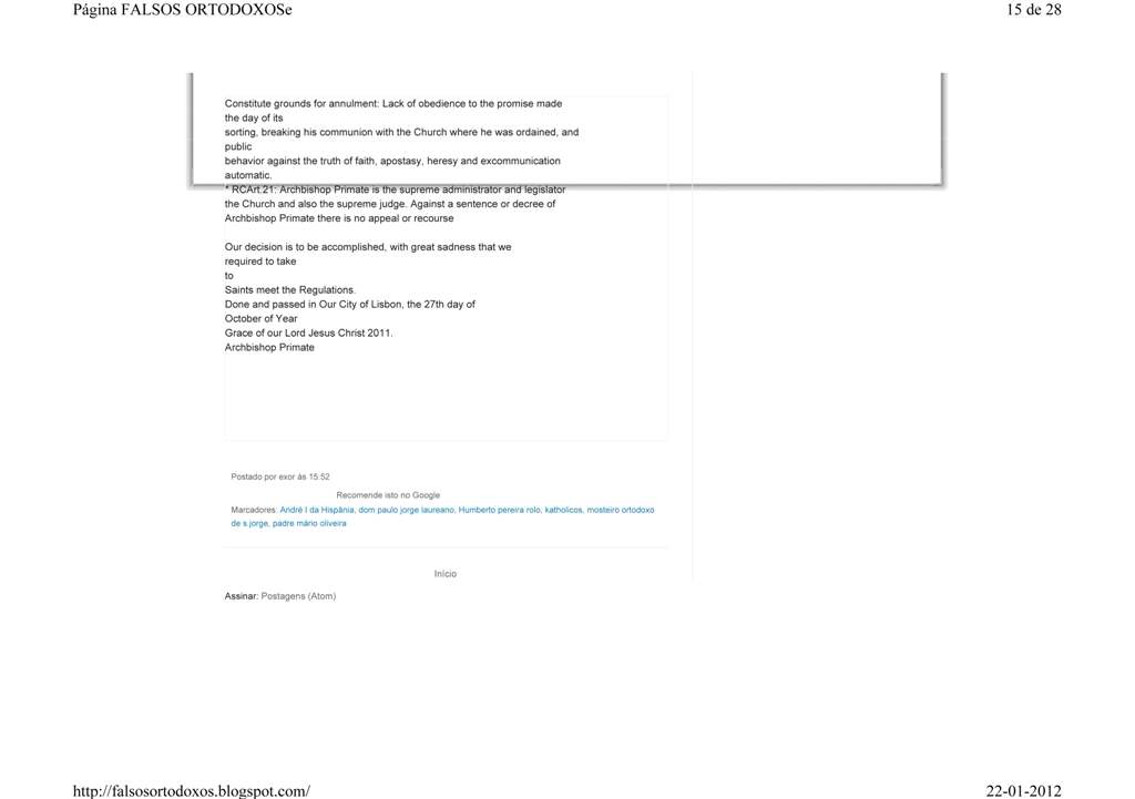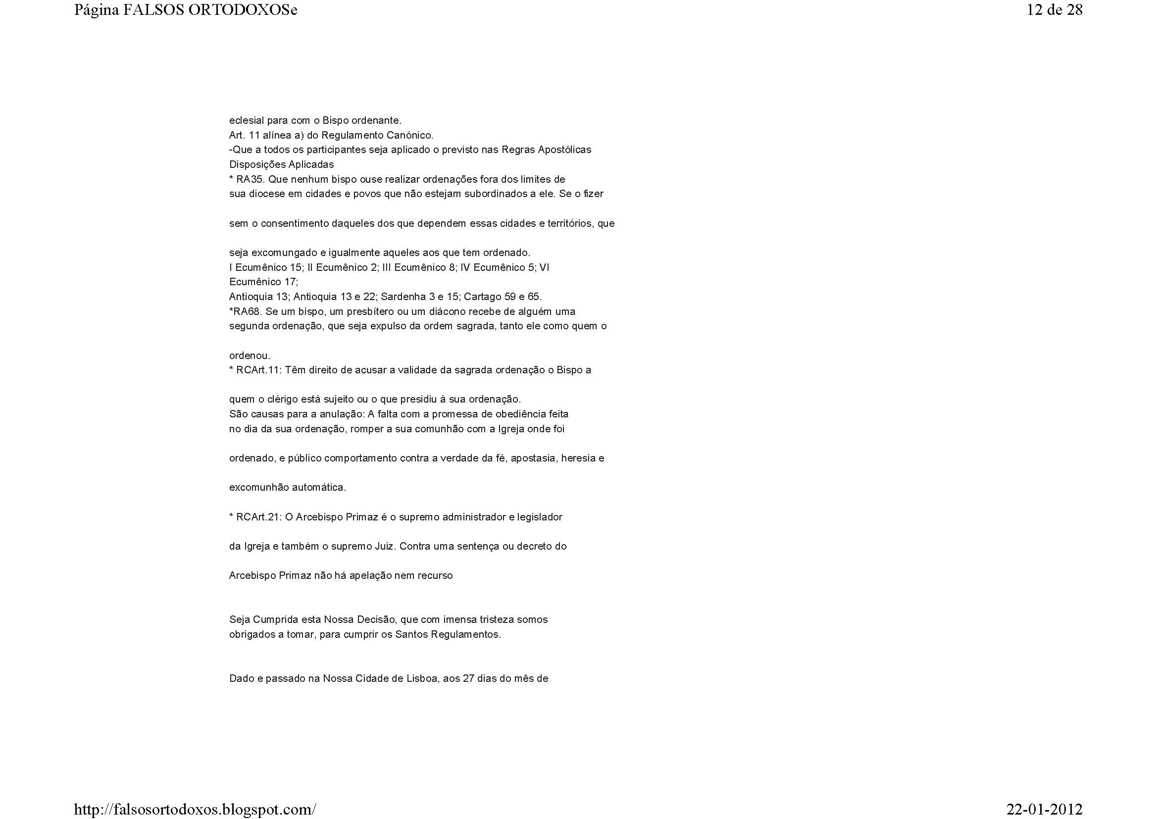 a todas as falsas afirmações feitas contra si e seus clérigos, da parte do “arcebispo primaz”