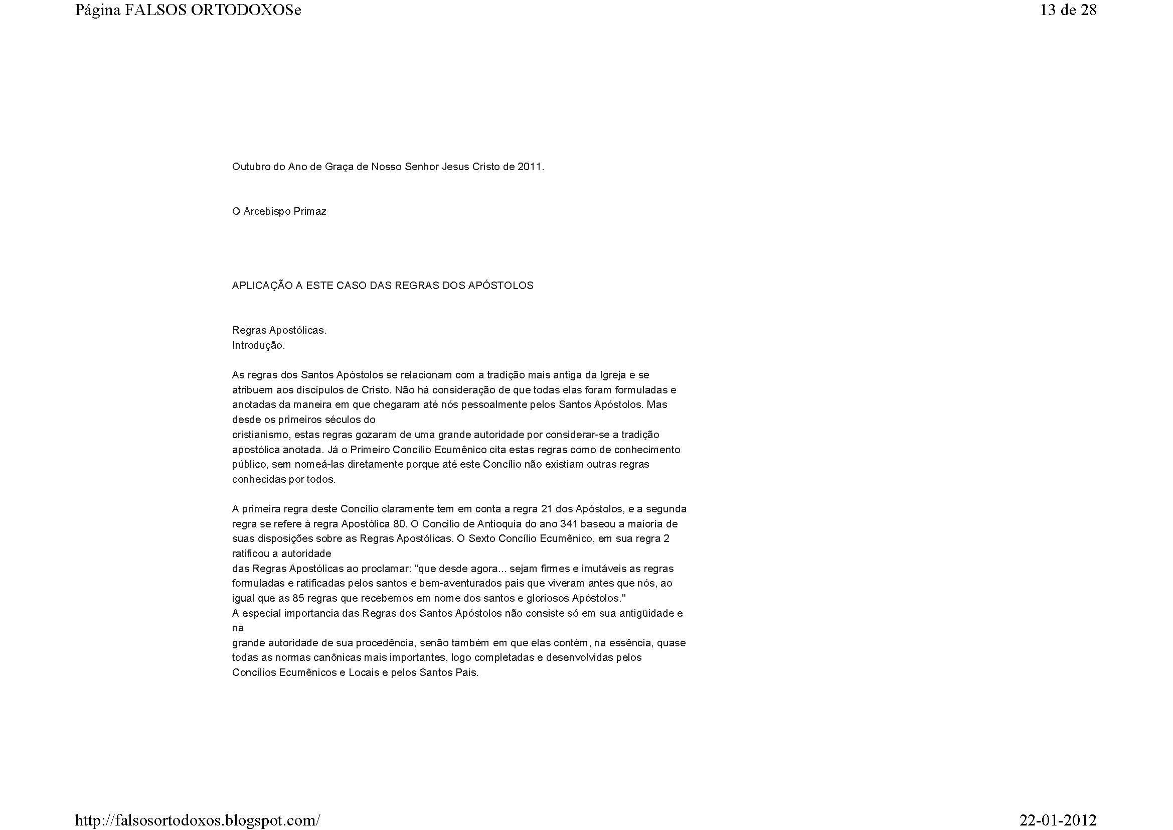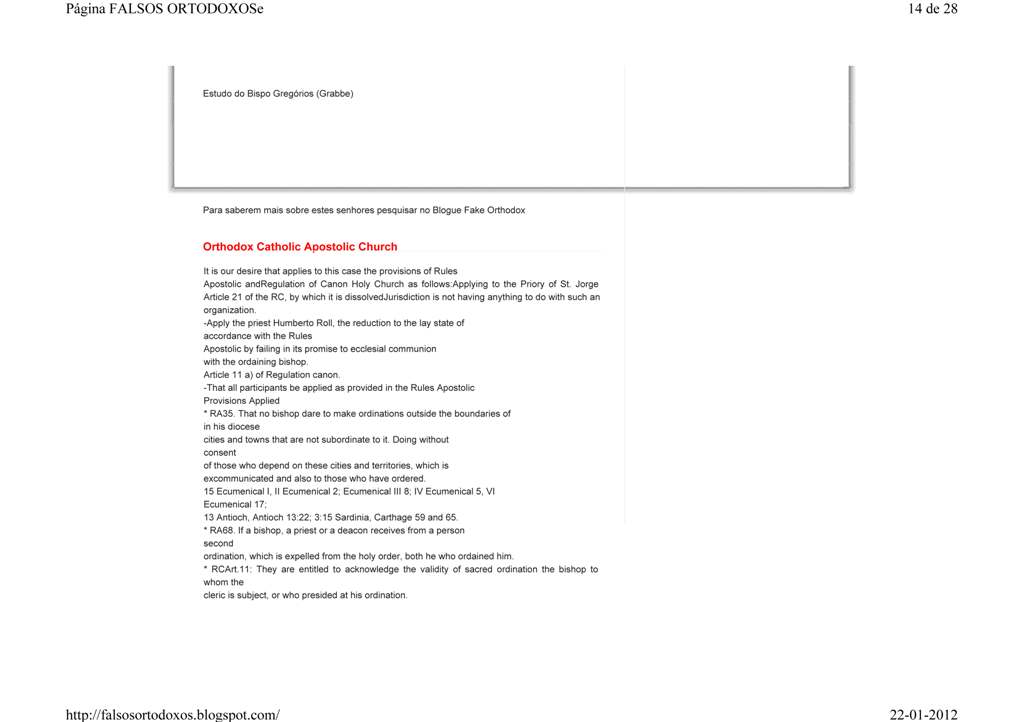 da IGREJA APOSTÓLICA CATÓLICA ORTODOXA,