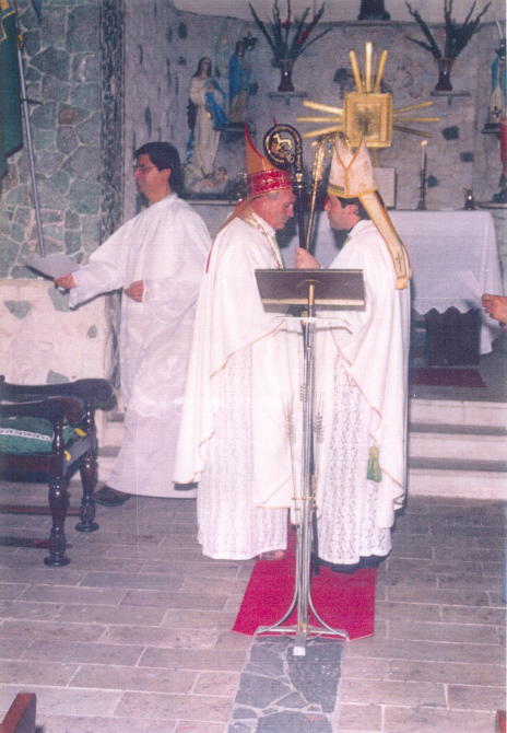 Documento da Reconsagração Episcopal e Transmissão de Sucessão Apostólica entre o herético Armando Monteiro e o D. Luis de Marchi, bispo de São Paulo - Brasil, da Igreja Católica Apostólica Brasileira