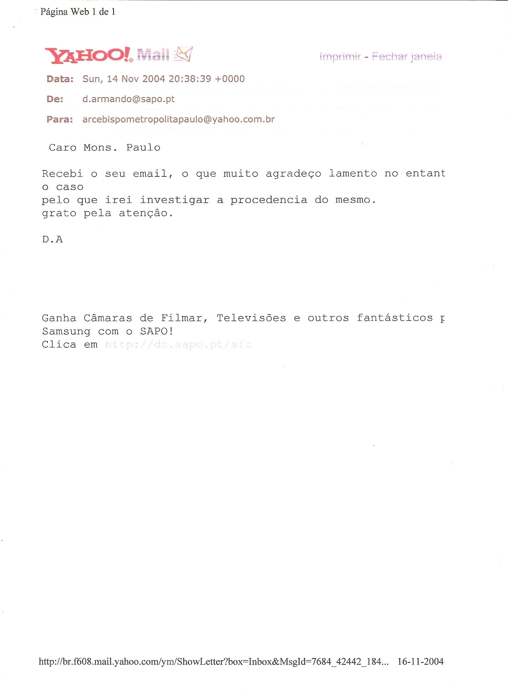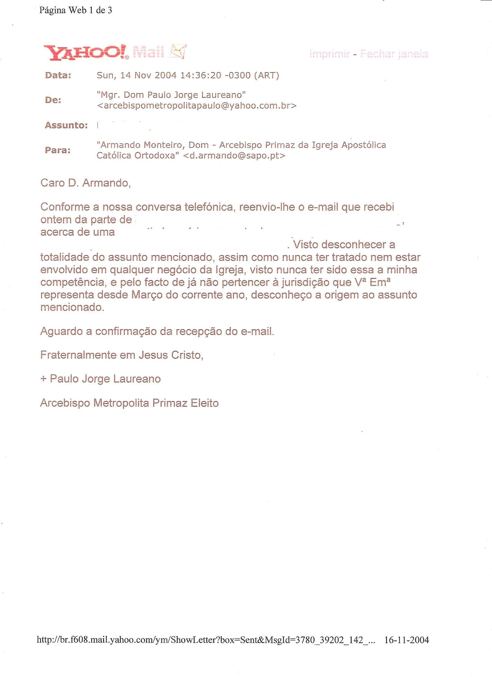 a todas as falsas afirmações feitas contra si e seus clérigos, da parte do “arcebispo primaz”