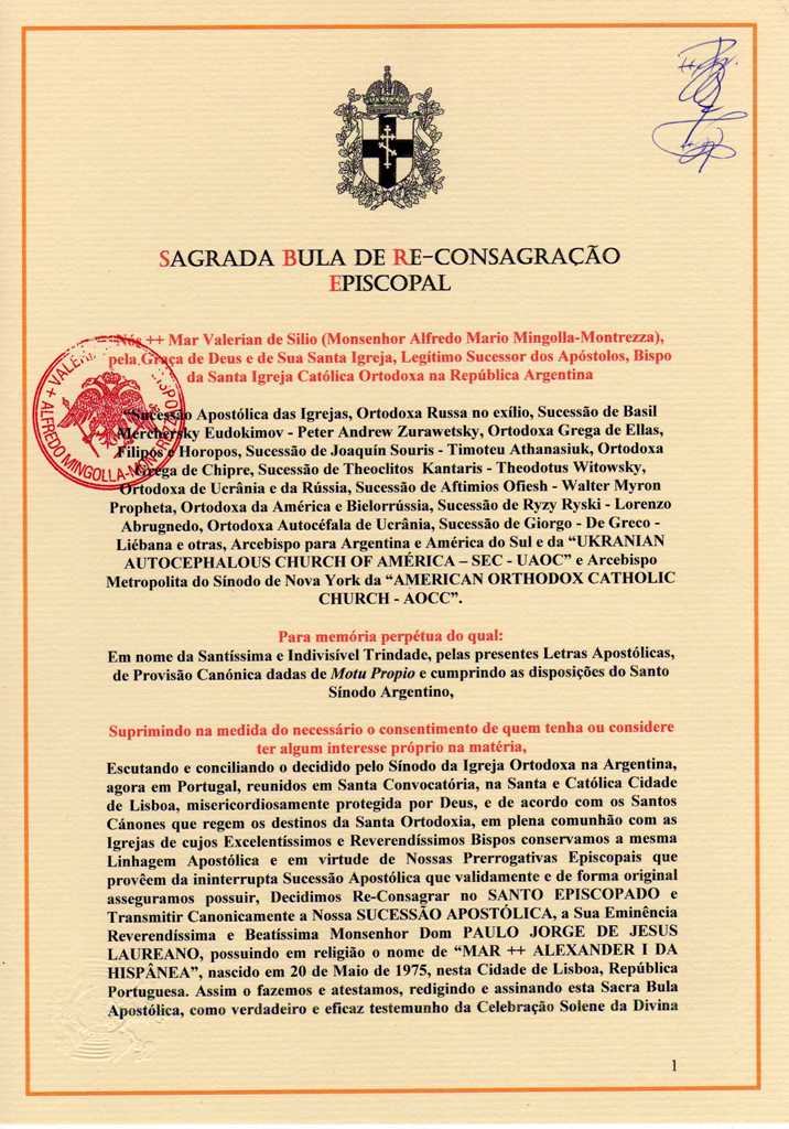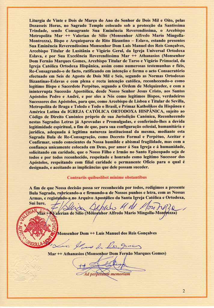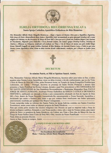 Decretos da Re-Consagração e Transmissão de Sucessão Apostólica de S.B. Dom Paulo Laureano