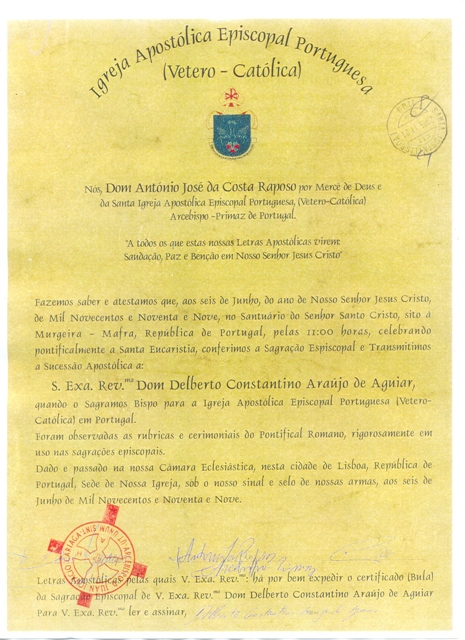 Bula da Sagração Episcopal de S.E.R. Dom Delberto Constantino Araújo de Aguiar