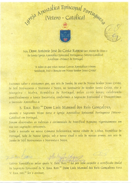 Bula da Sagração Episcopal de S.E.R. Dom Luis Manuel dos Reis Gonçalves