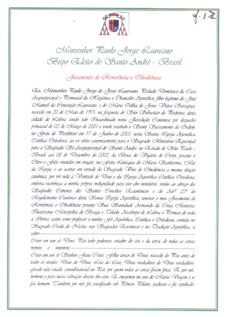da IGREJA APOSTÓLICA CATÓLICA ORTODOXA,