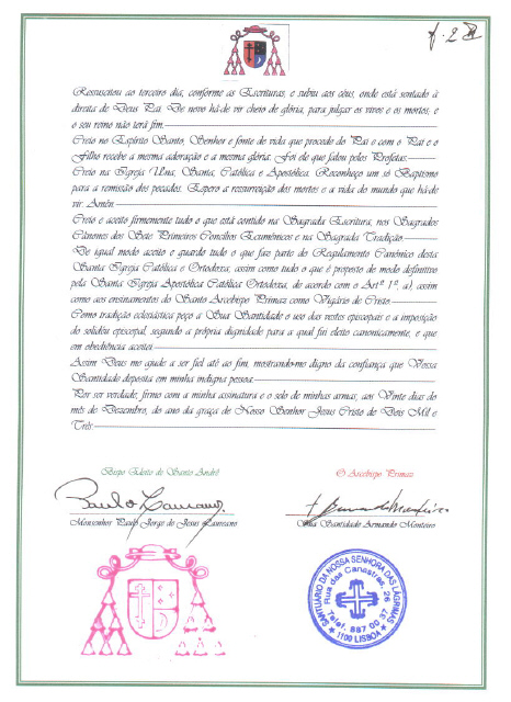 a todas as falsas afirmações feitas contra si e seus clérigos, da parte do “arcebispo primaz”