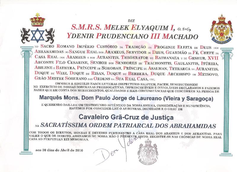 Cavaleiro da Grã-Cruz de Justiça na Sacratíssima Ordem Patriarcal dos Abrahamidas
