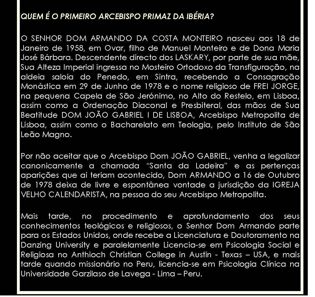 Sua Beatitude DOM ARMANDO DA COSTA MONTEIRO, em consequência