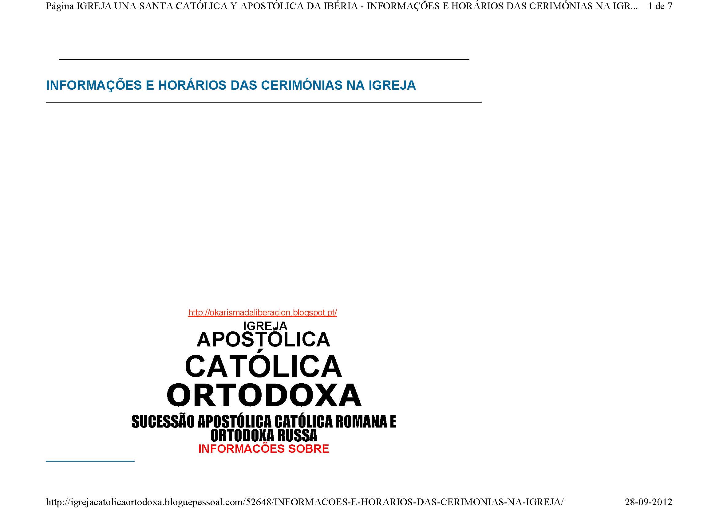 Resposta da IGREJA CATÓLICA ORTODOXA HISPÂNICA