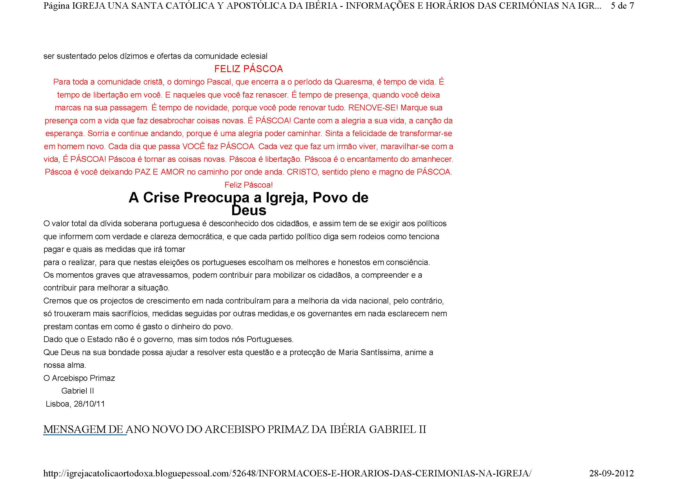 MENSAGEM DE ANO NOVO DO ARCEBISPO PRIMAZ DA IBÉRIA GABRIEL II
