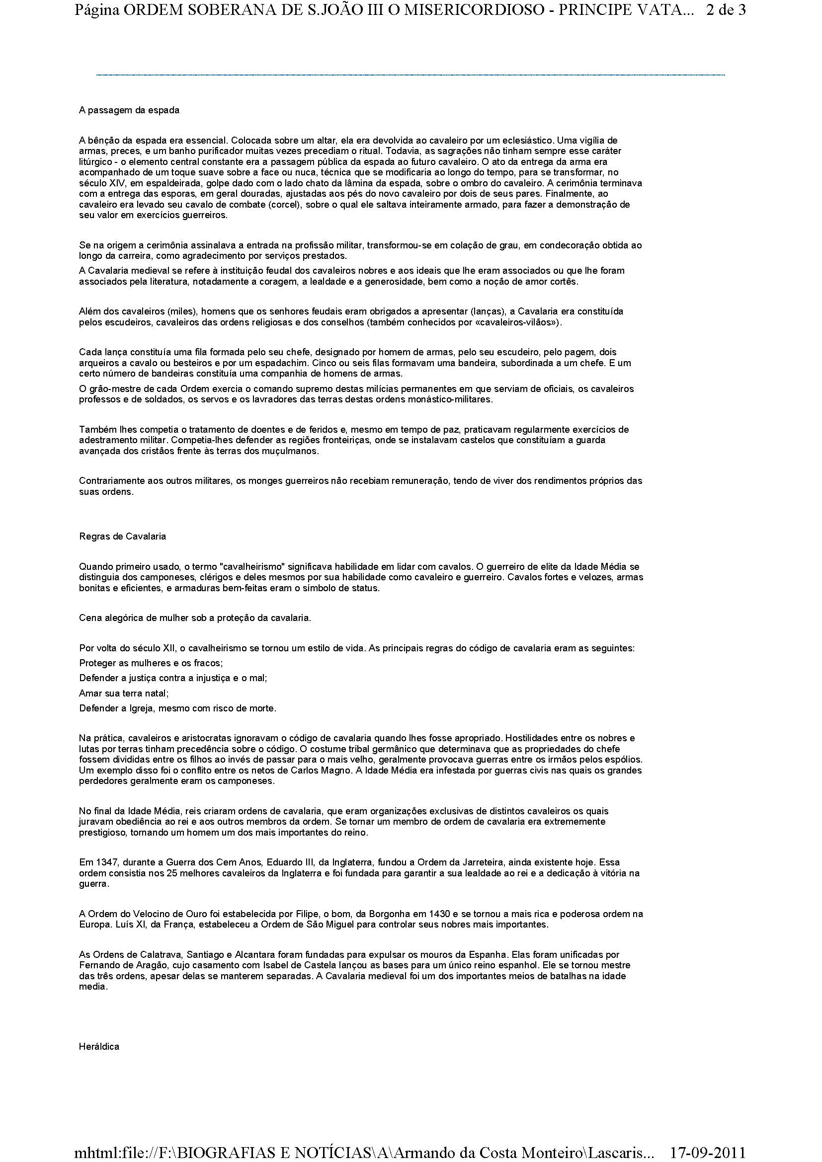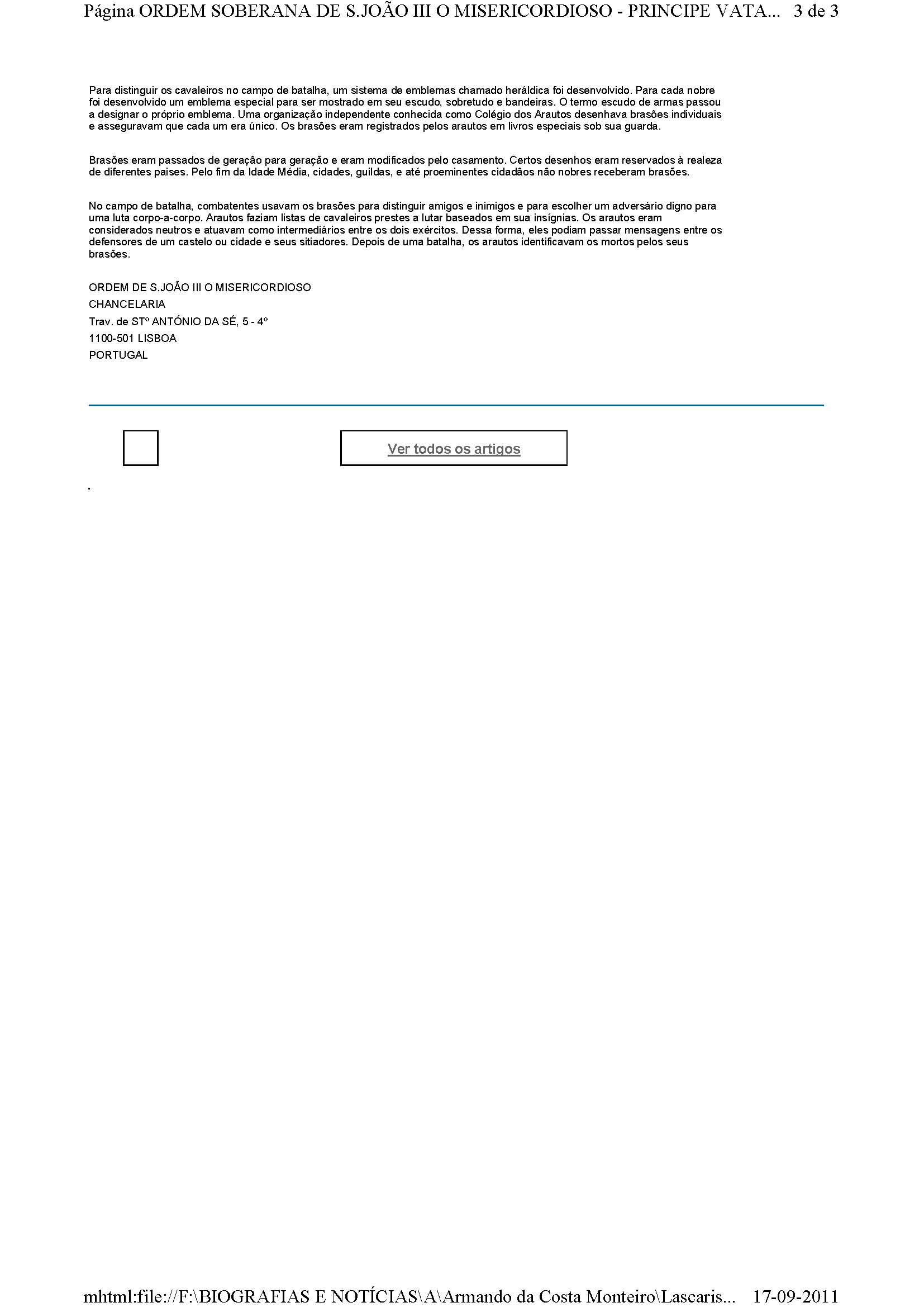 «Ordem Soberana de S.João III O Misericordioso