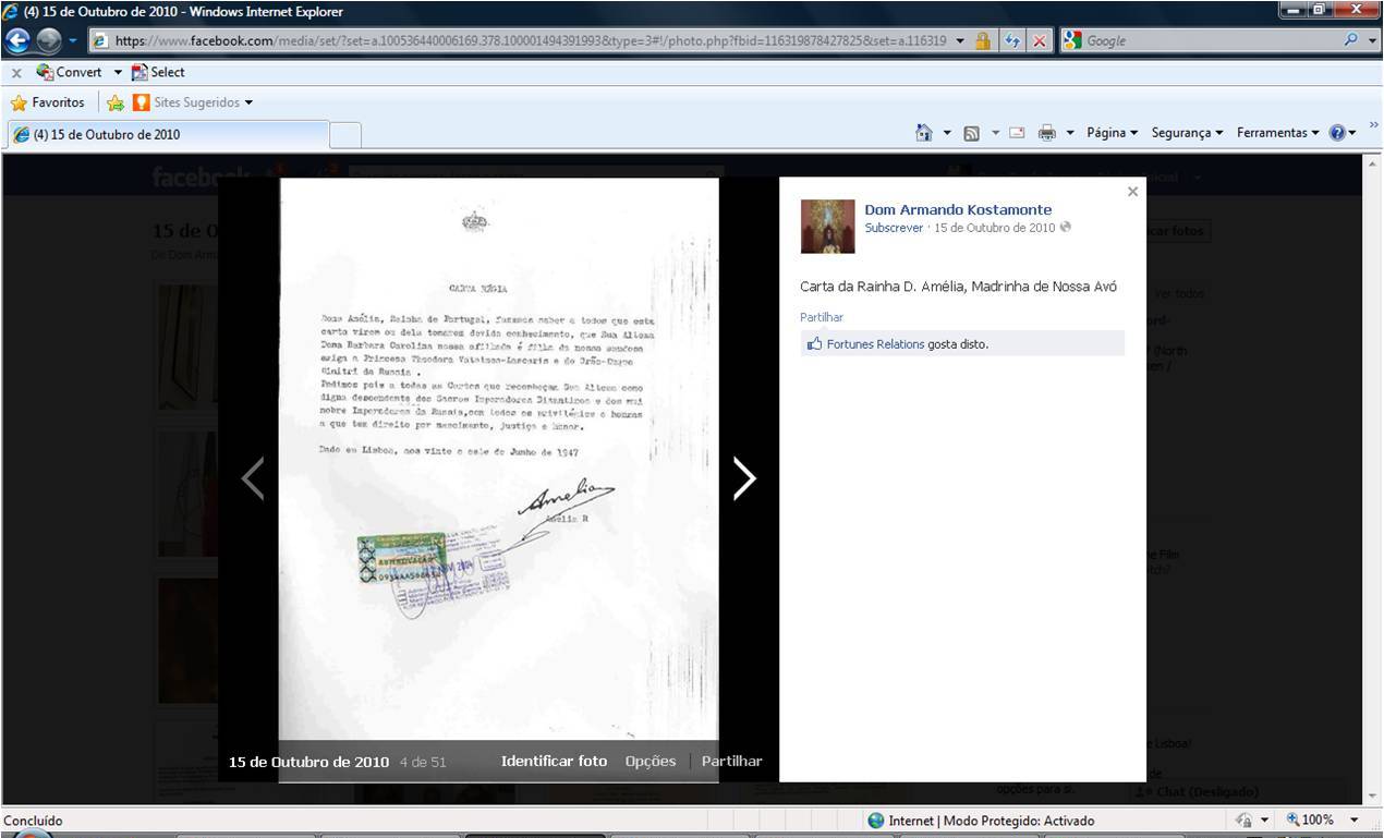 Carta da Rainha D. Amélia, madrinha de nossa avó