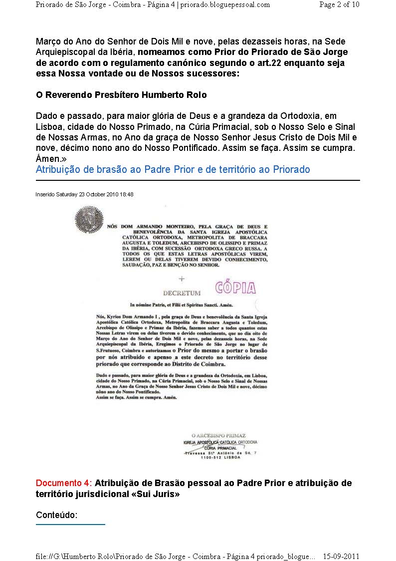 Nomeação do Padre Humberto Rolo como Prior do Priorado de S. Jorge