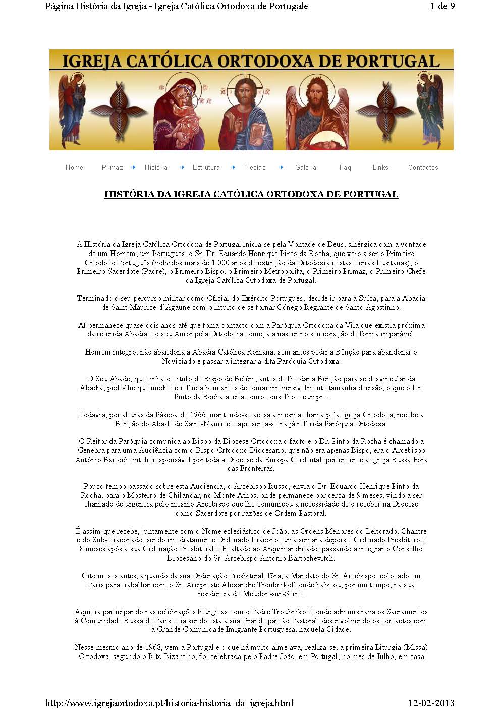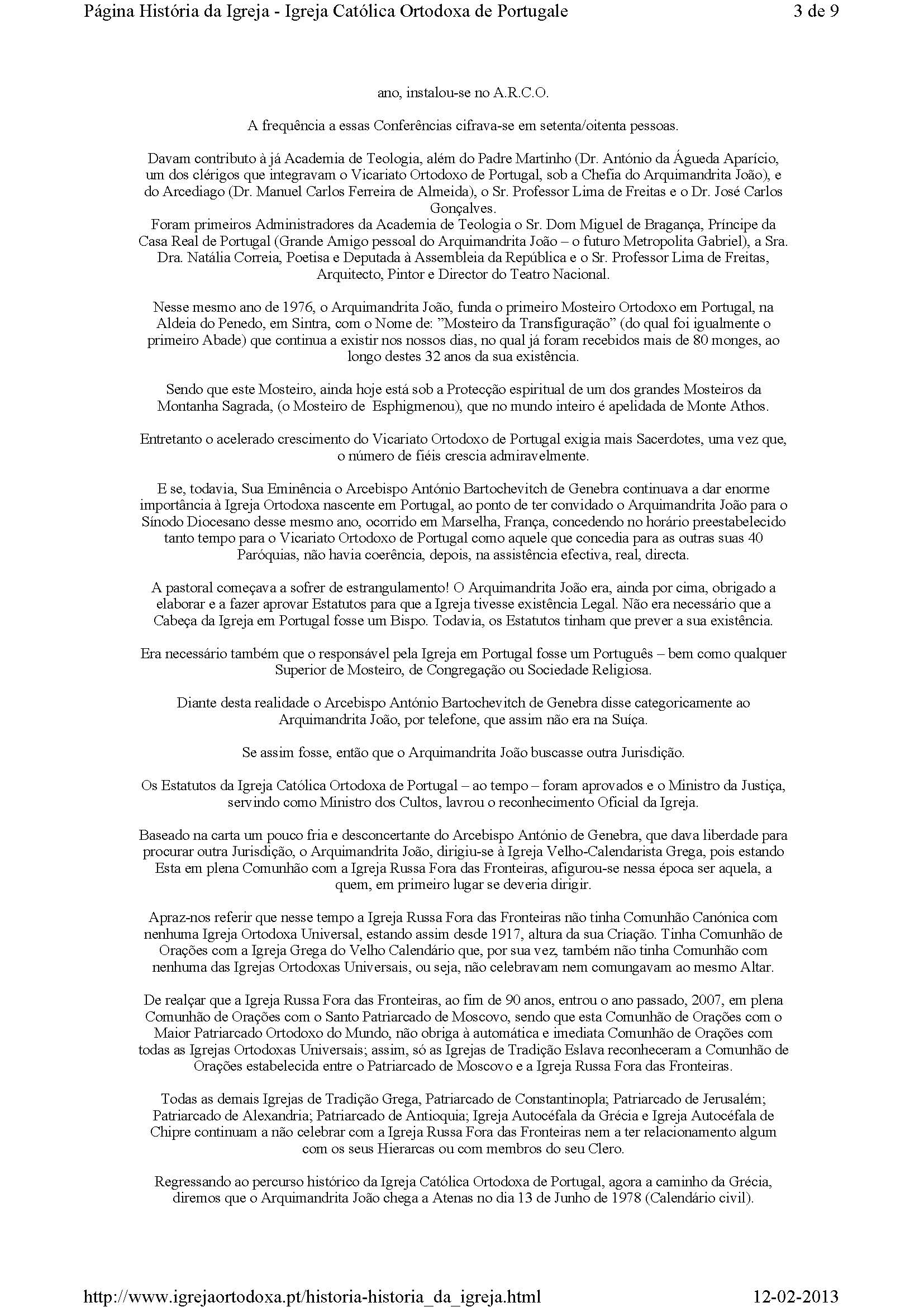 «HISTÓRIA DA IGREJA CATÓLICA ORTODOXA DE PORTUGAL