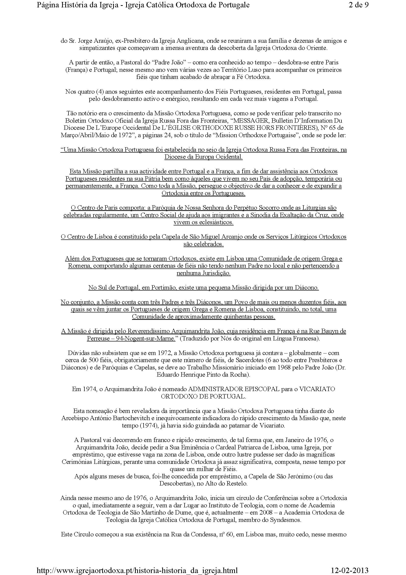 A Missão é dirigida pelo Reverendíssimo Arquimandrita João, cuja residência em França é na Rue Bauyn de Perreuse – 94-Nogent-sur-Marne.” (Traduzido por Nós do original em Língua Francesa).