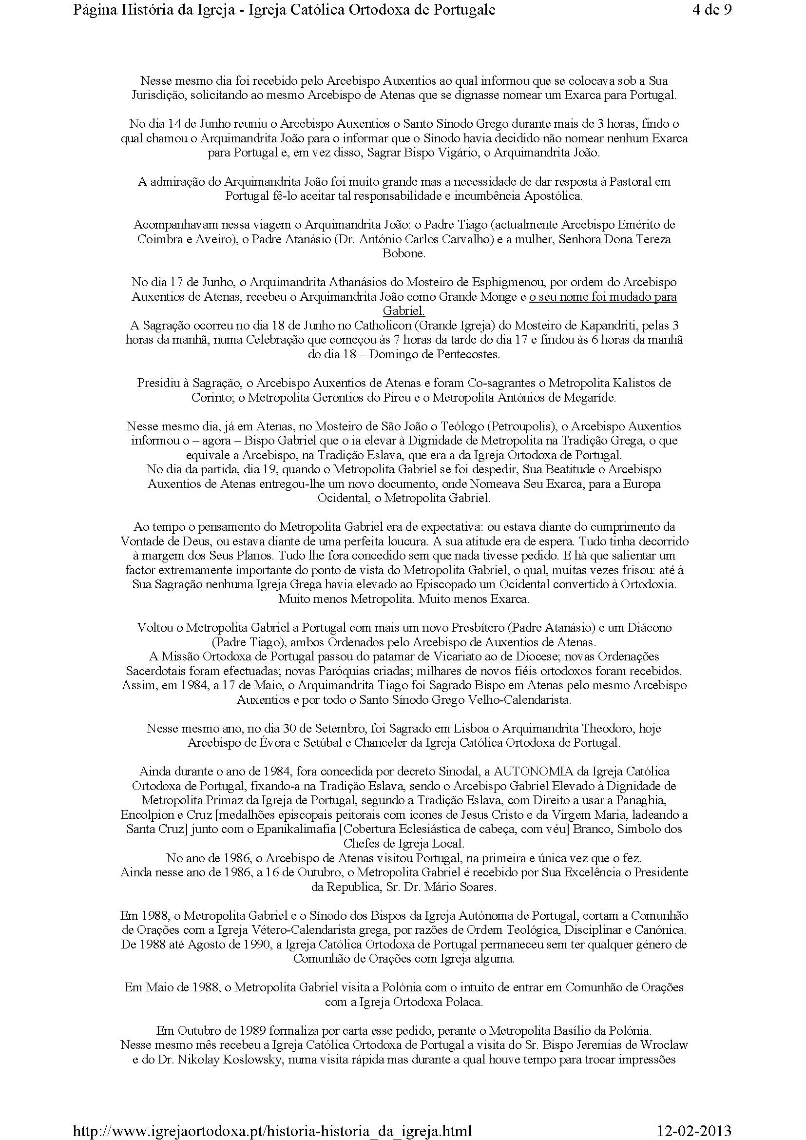 Em 1988, o Metropolita Gabriel e o Sínodo dos Bispos da Igreja Autónoma de Portugal, cortam a Comunhão de Orações com a Igreja Vétero-Calendarista grega, por razões de Ordem Teológica, Disciplinar e Canónica.
