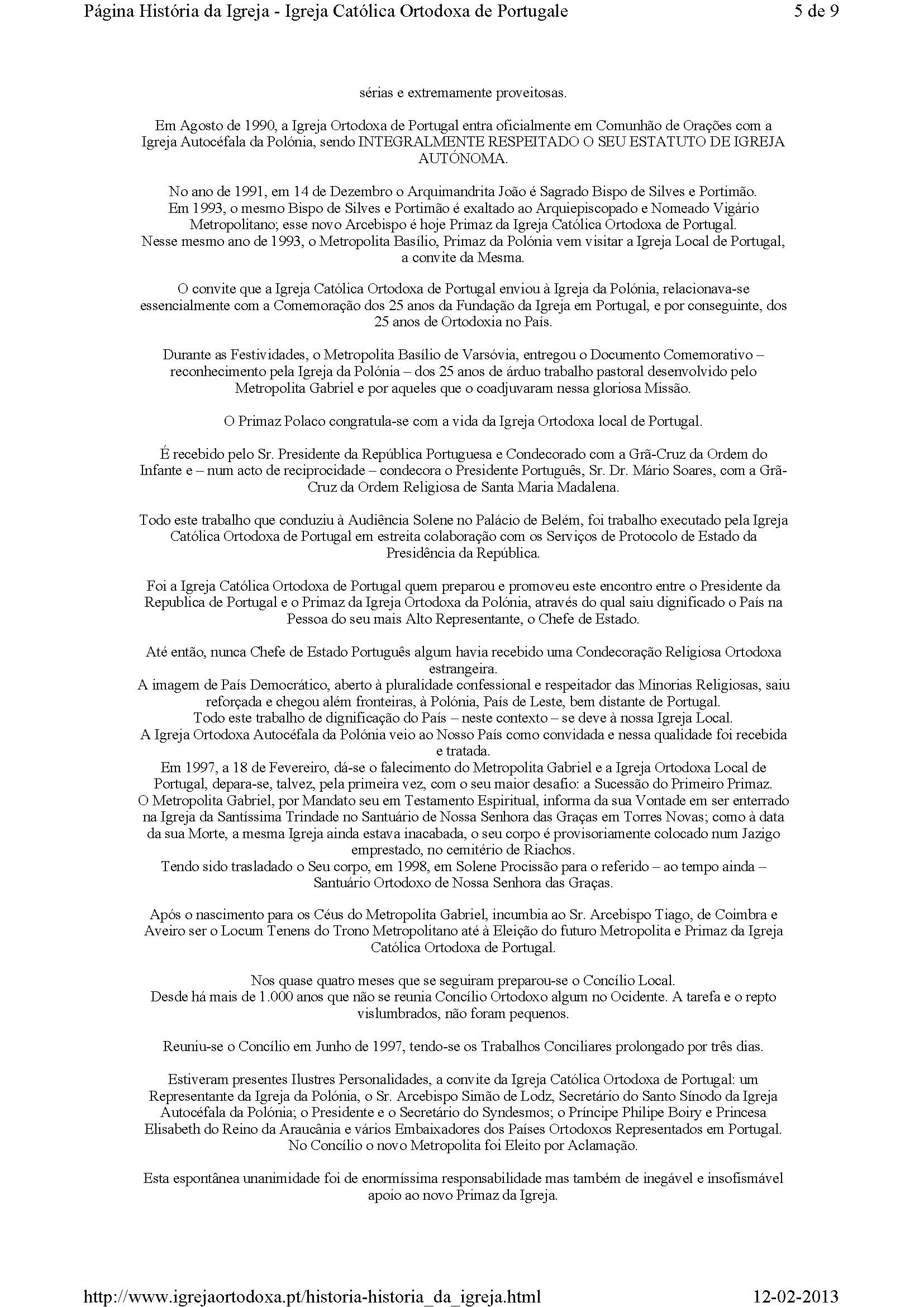 Em Agosto de 1990, a Igreja Ortodoxa de Portugal entra oficialmente em Comunhão de Orações com a Igreja Autocéfala da Polónia, sendo INTEGRALMENTE RESPEITADO O SEU ESTATUTO DE IGREJA AUTÓNOMA.