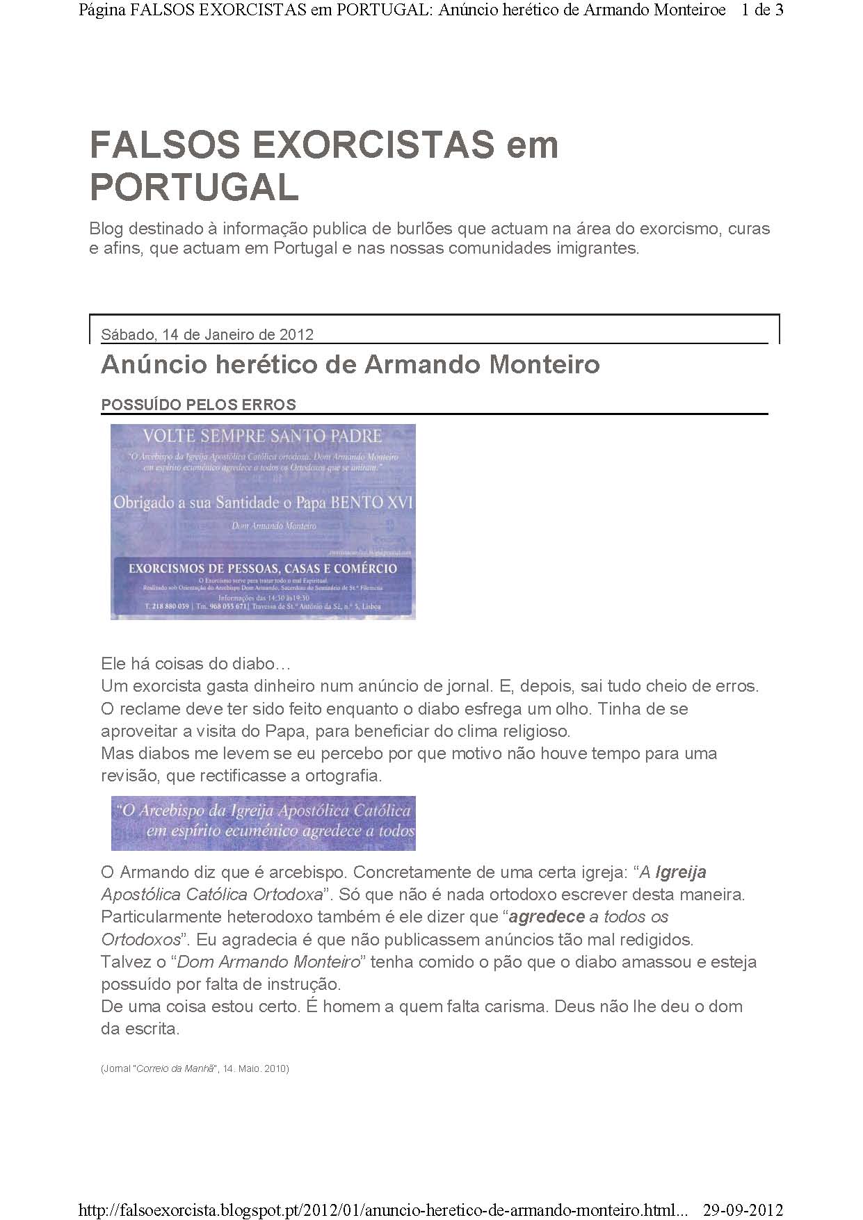 Anúncio herético de Armando Monteiro - Possuído pelos erros