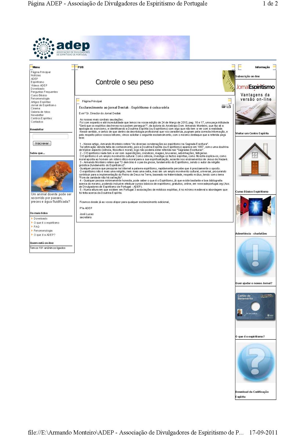 www.adeportugal.org (Ass. de Divulgadores de Espiritismo de Portugal - ADEP).