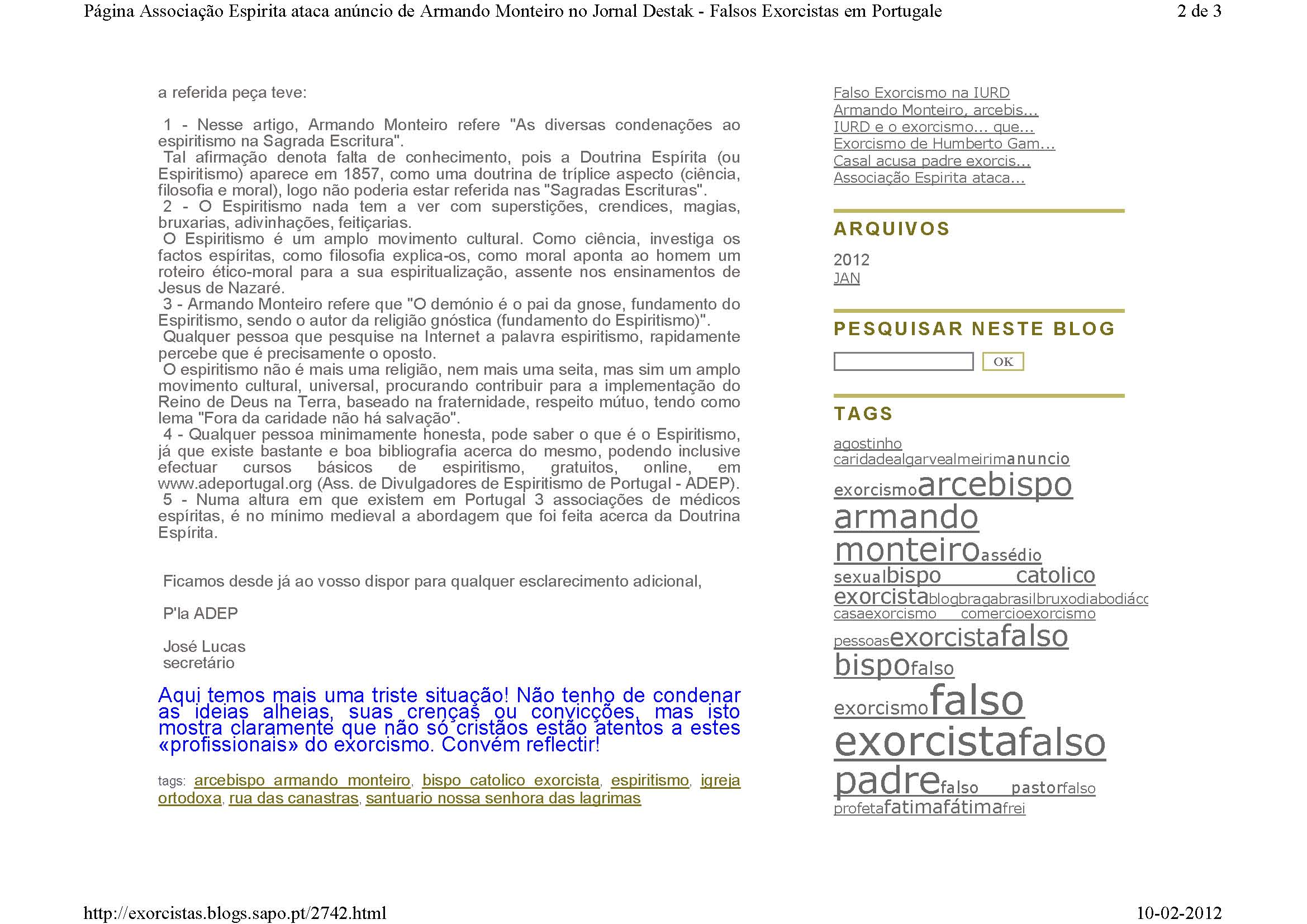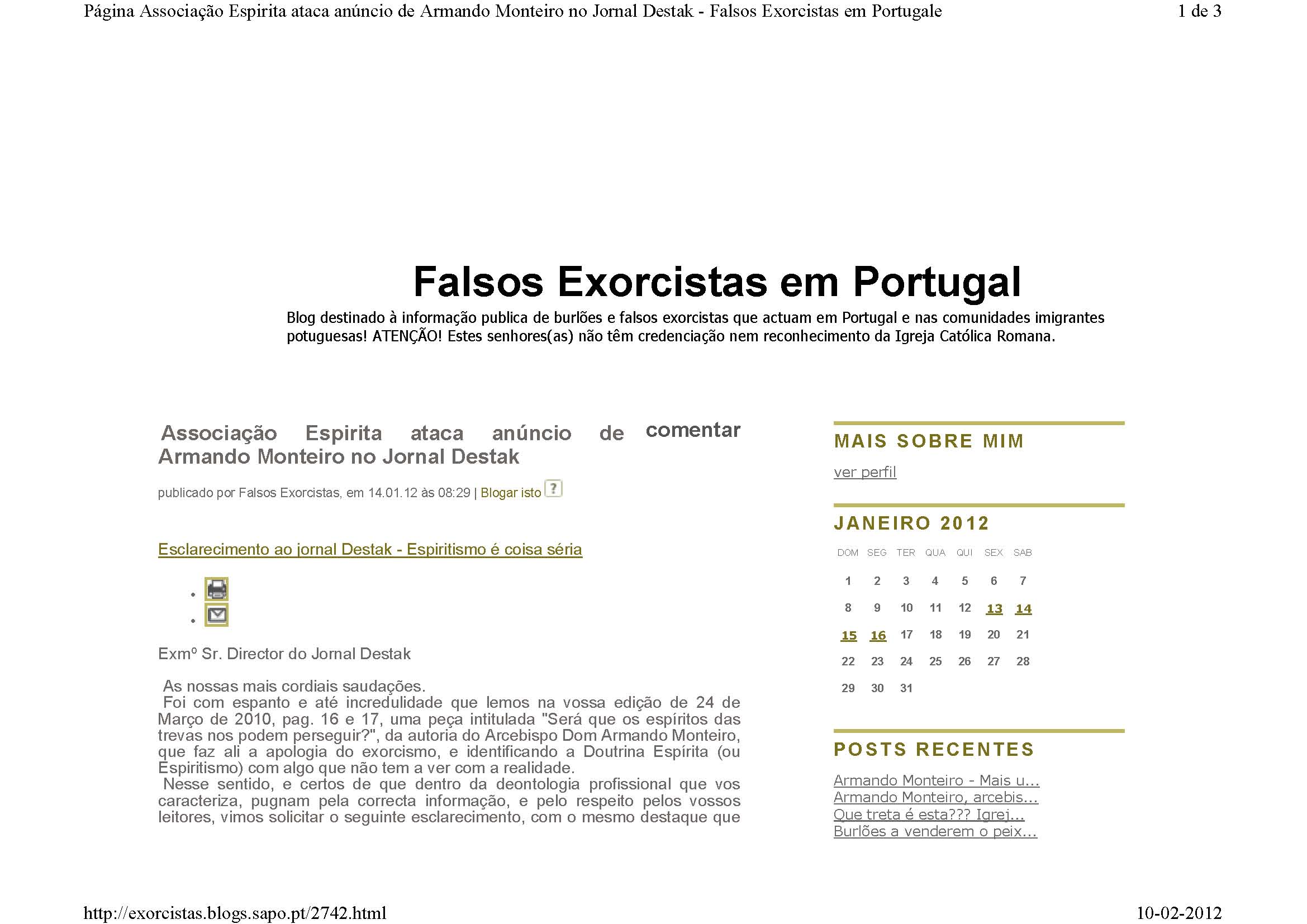 mostra claramente que não só cristãos estão atentos a estes «profissionais» do exorcismo. Convém reflectir!»