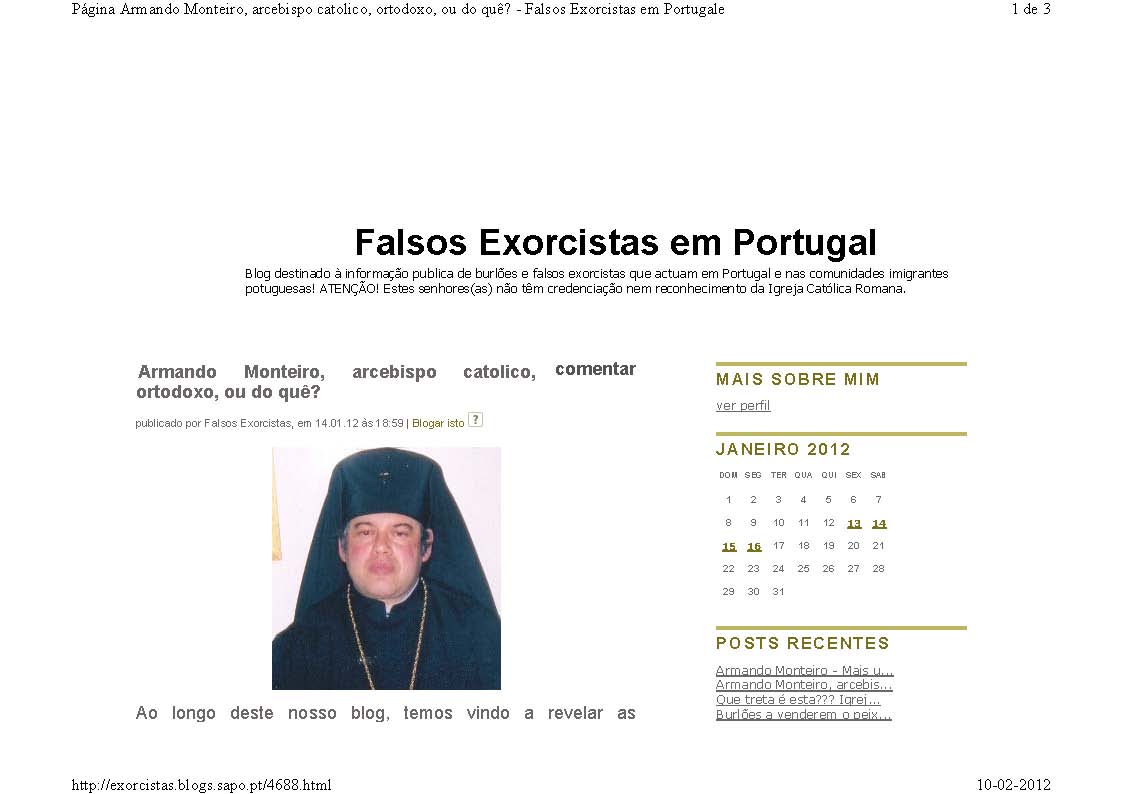 Armando Monteiro, arcebispo catolico, ortodoxo, ou do quê?