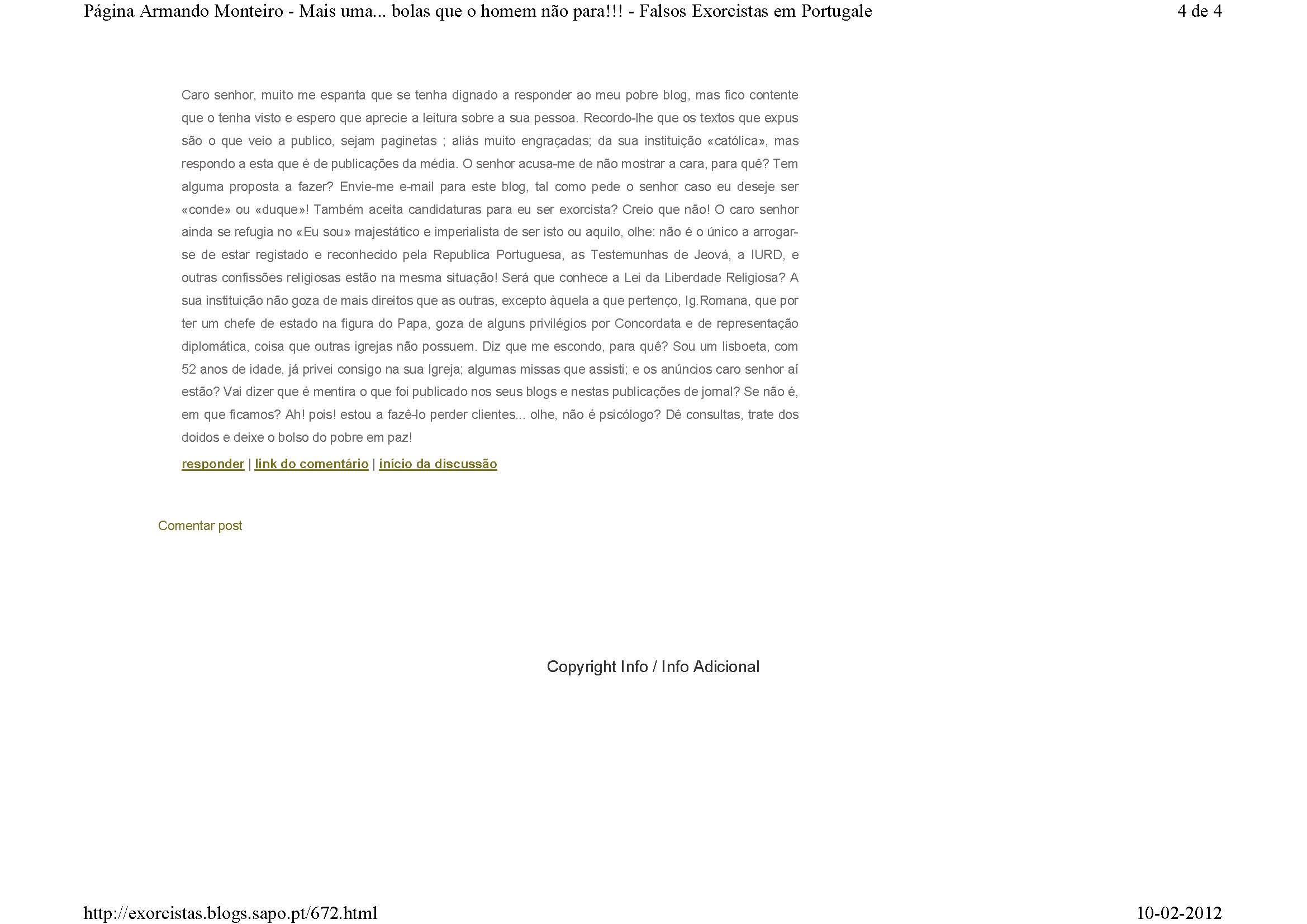 Caro senhor, muito me espanta que se tenha dignado a responder ao meu pobre blog, mas fico contente