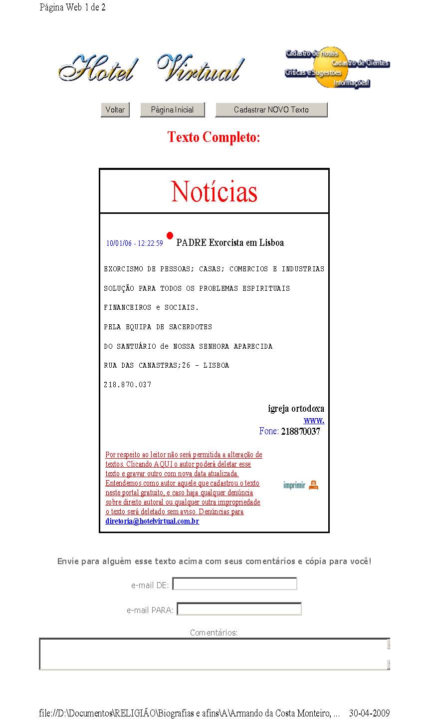 EXORCISMO DE PESSOAS; CASAS; COMERCIOS E INDUSTRIAS