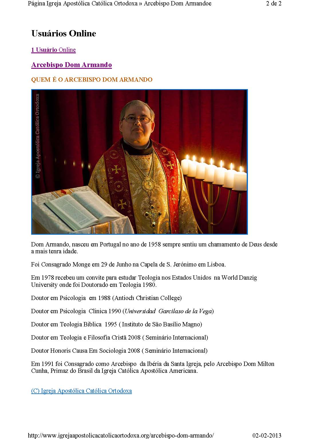Cunha, Primaz do Brasil da Igreja Católica Apostólica Americana.»