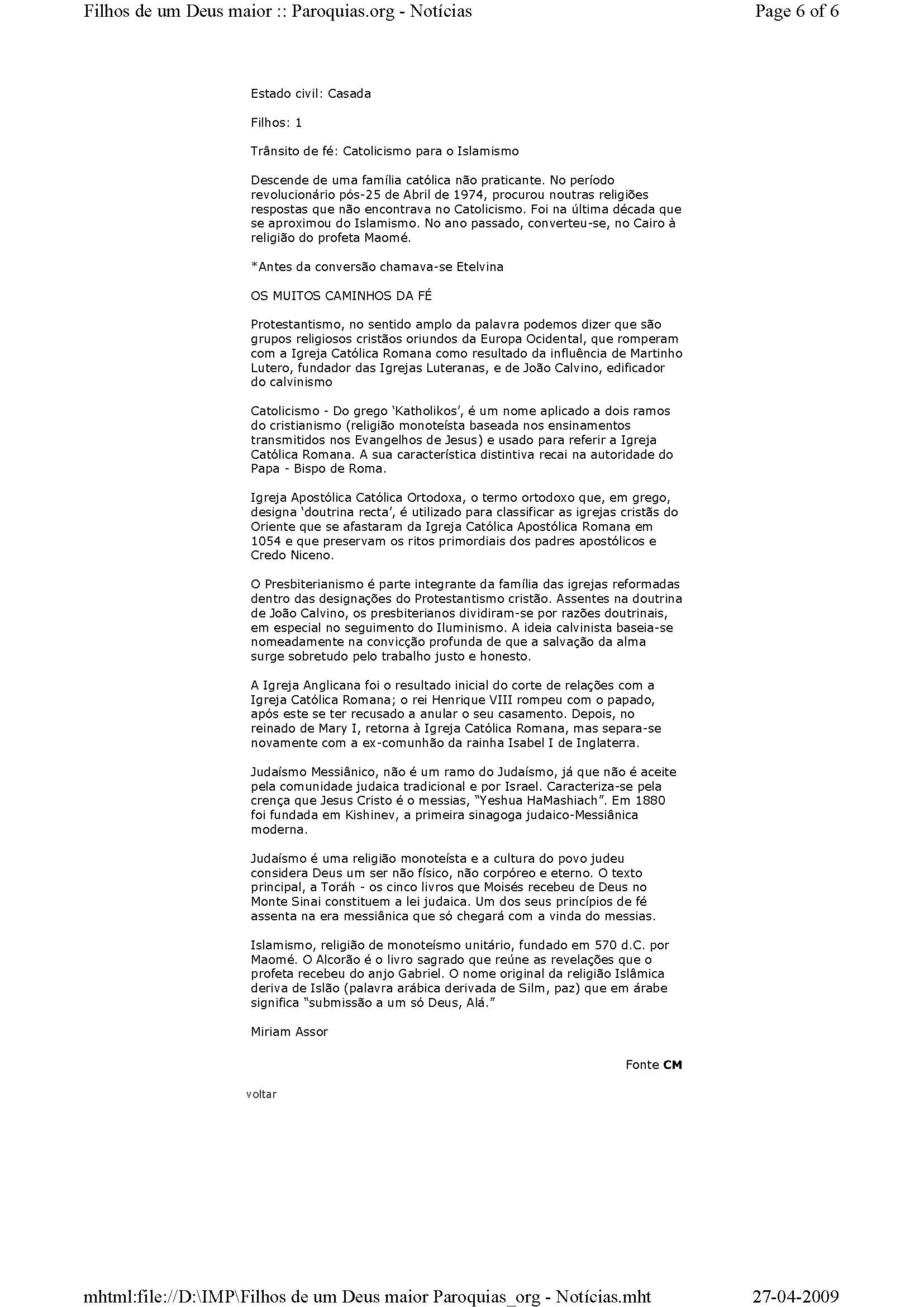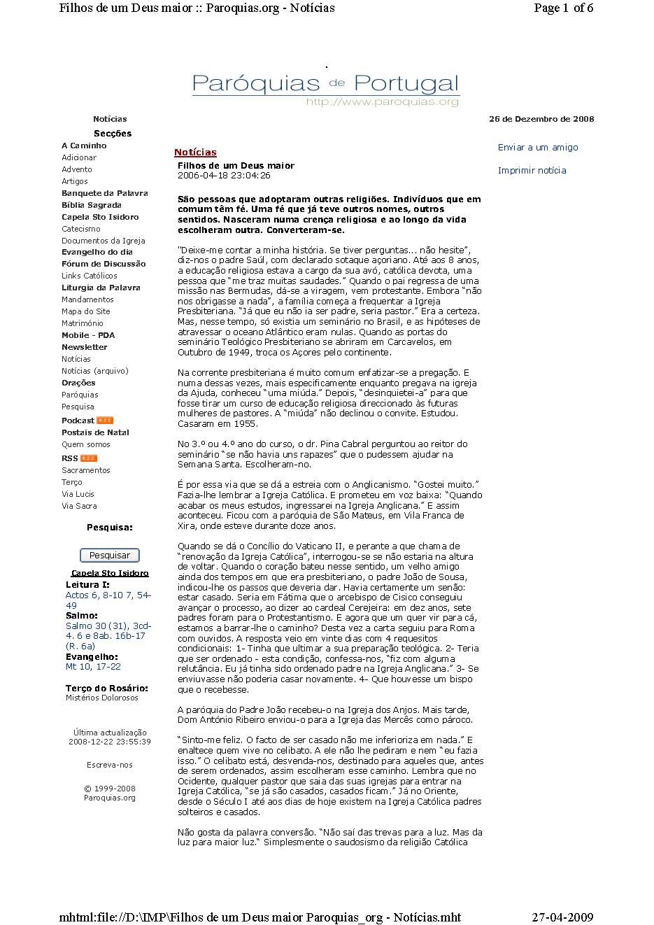 Não saiu da religião Católica Romana sem ouvir a opinião do bom