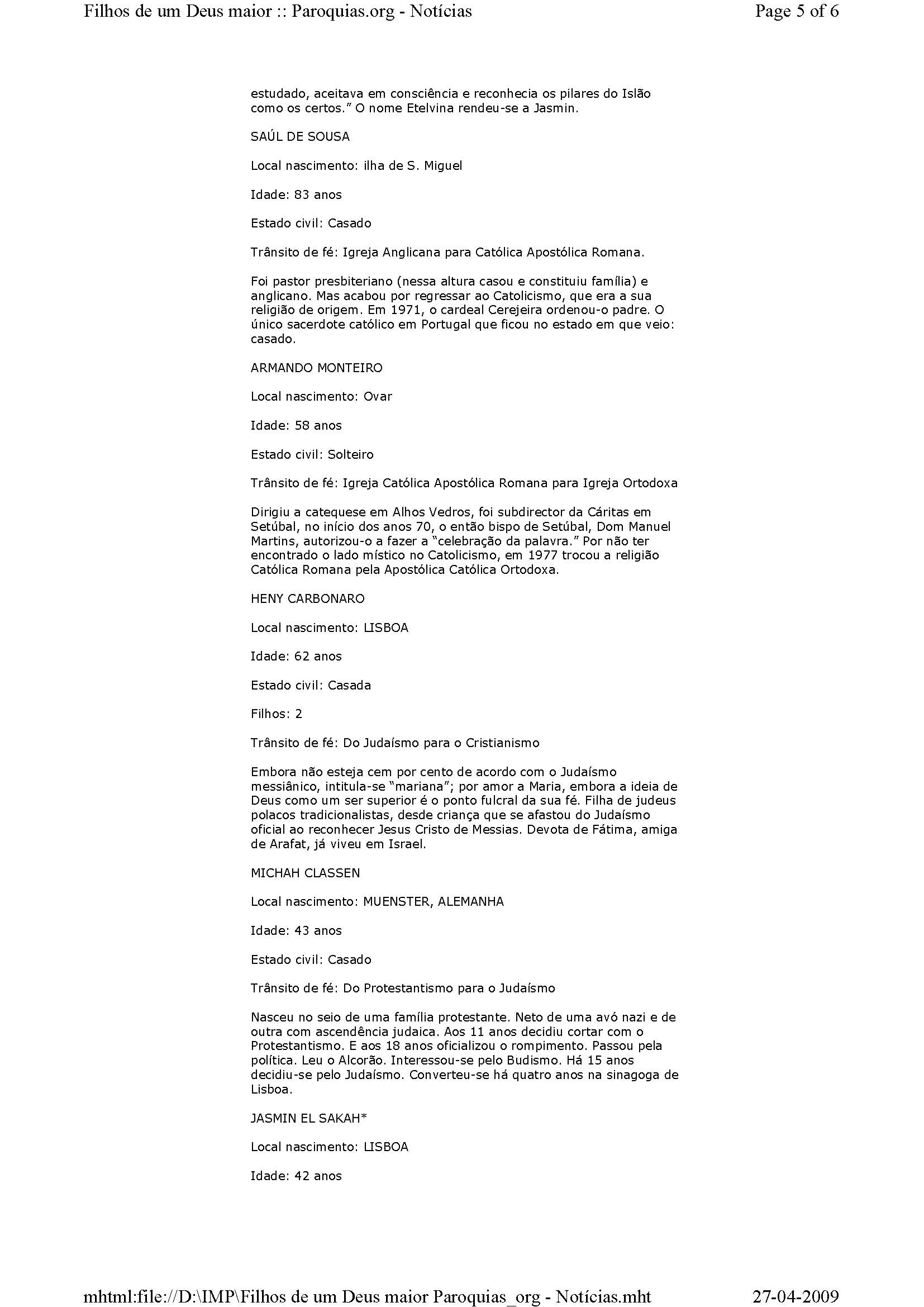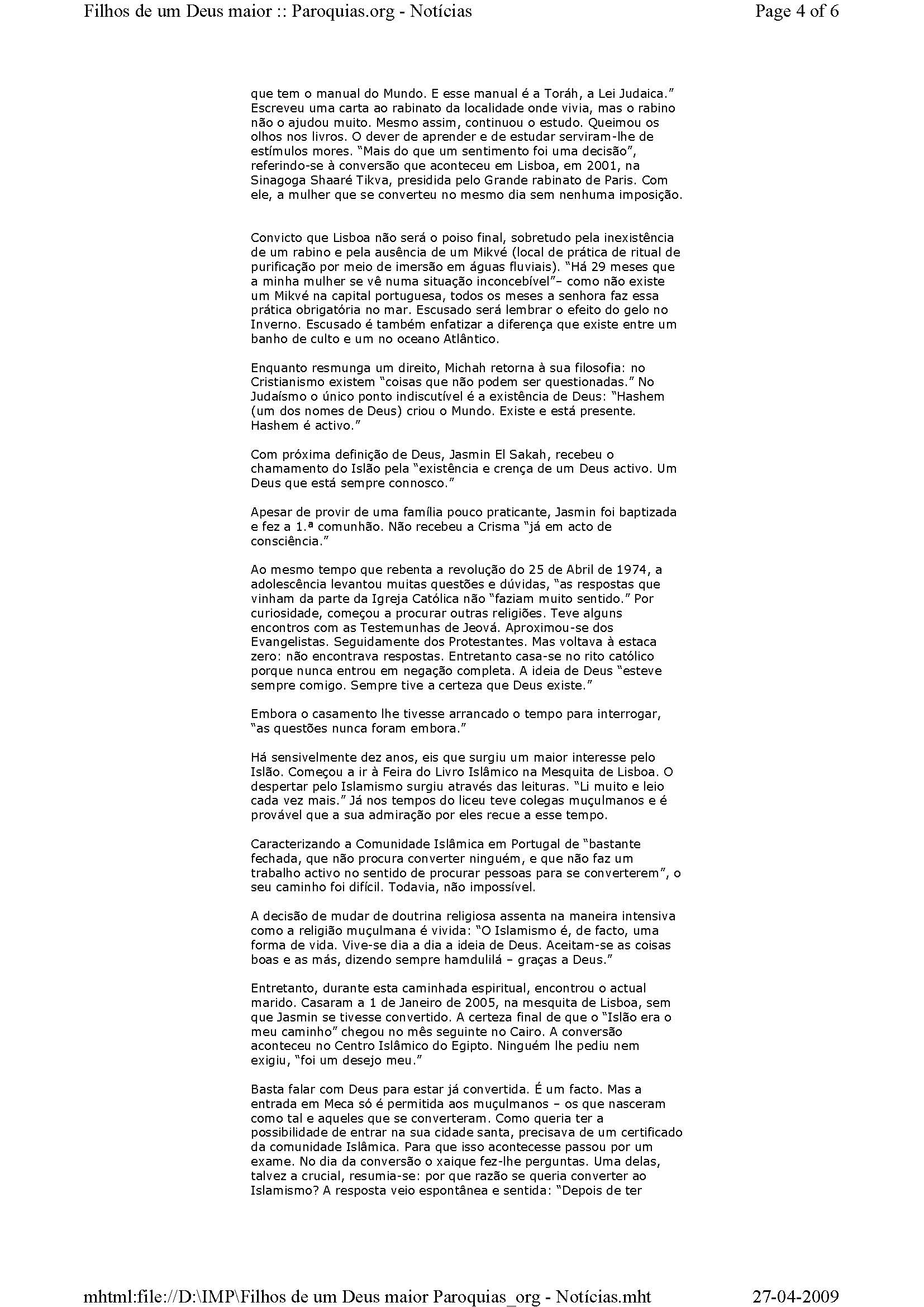 atendendo à sua formação religiosa, ficou expresso “numa passagem