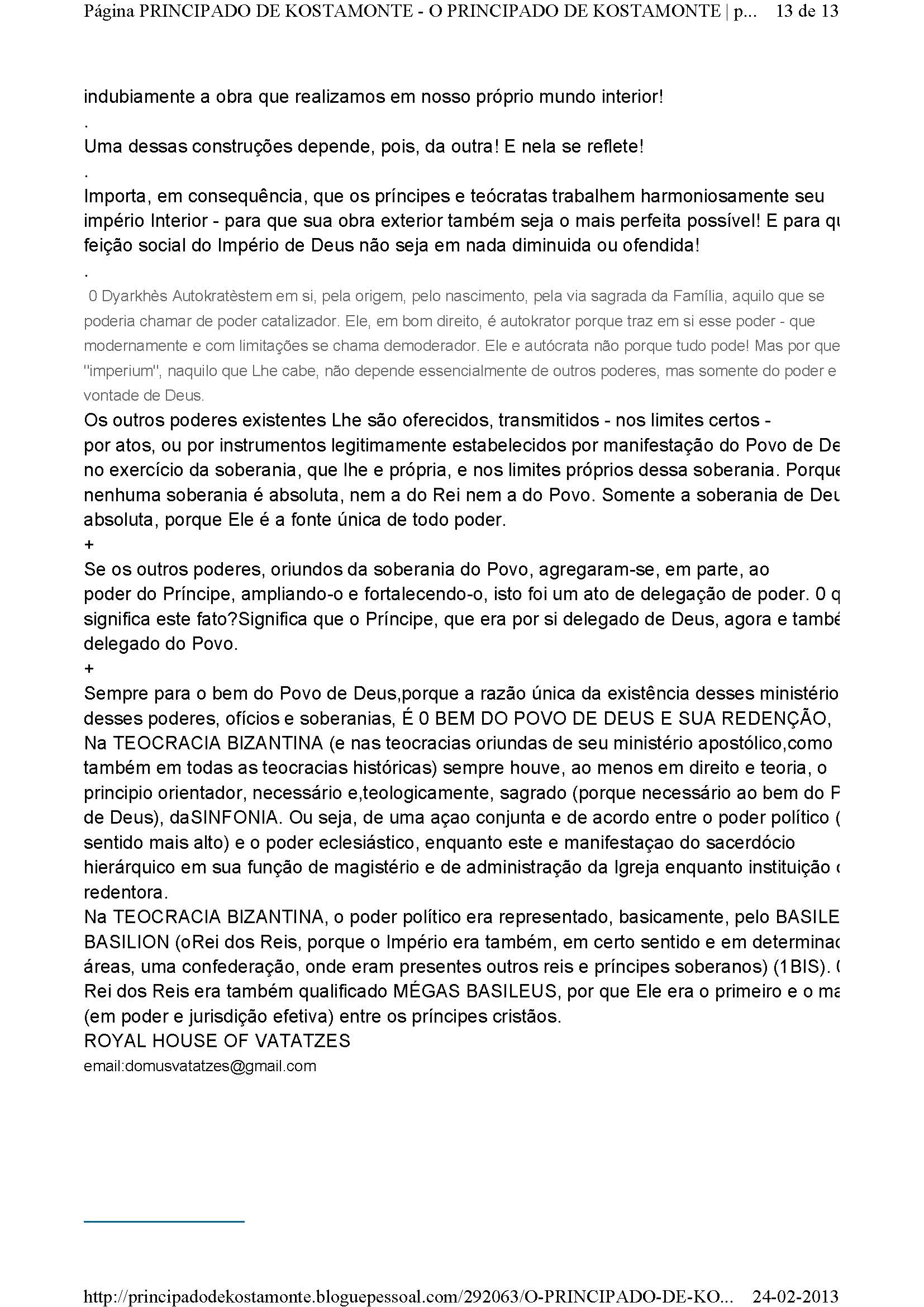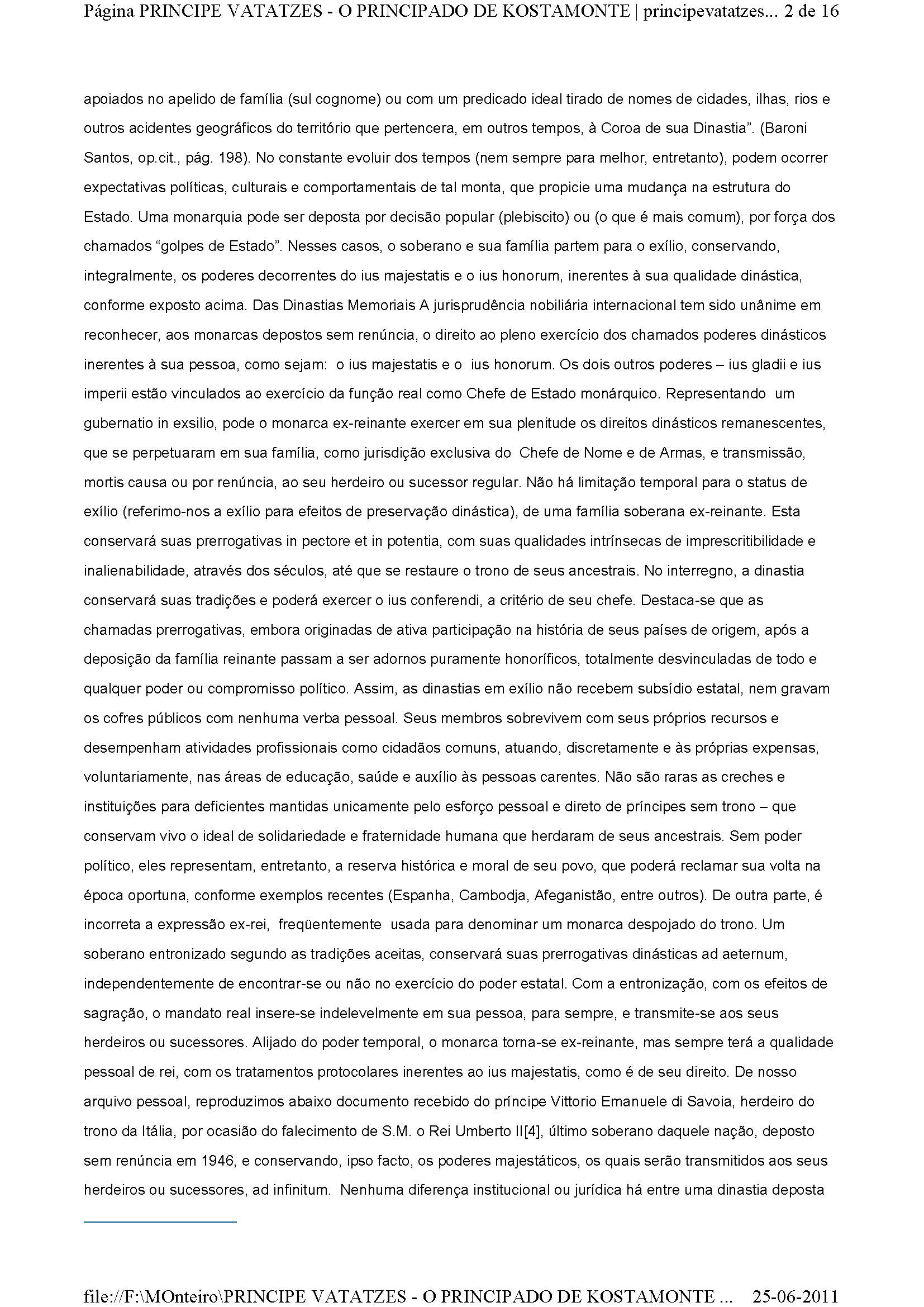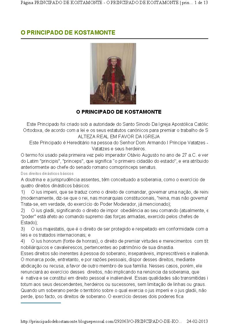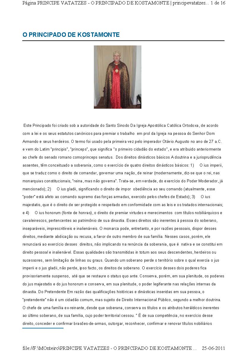 Este Principado é Hereditário na pessoa do Senhor Dom Armando I Principe Vatatzes - Vatatzes e seus herdeiros.