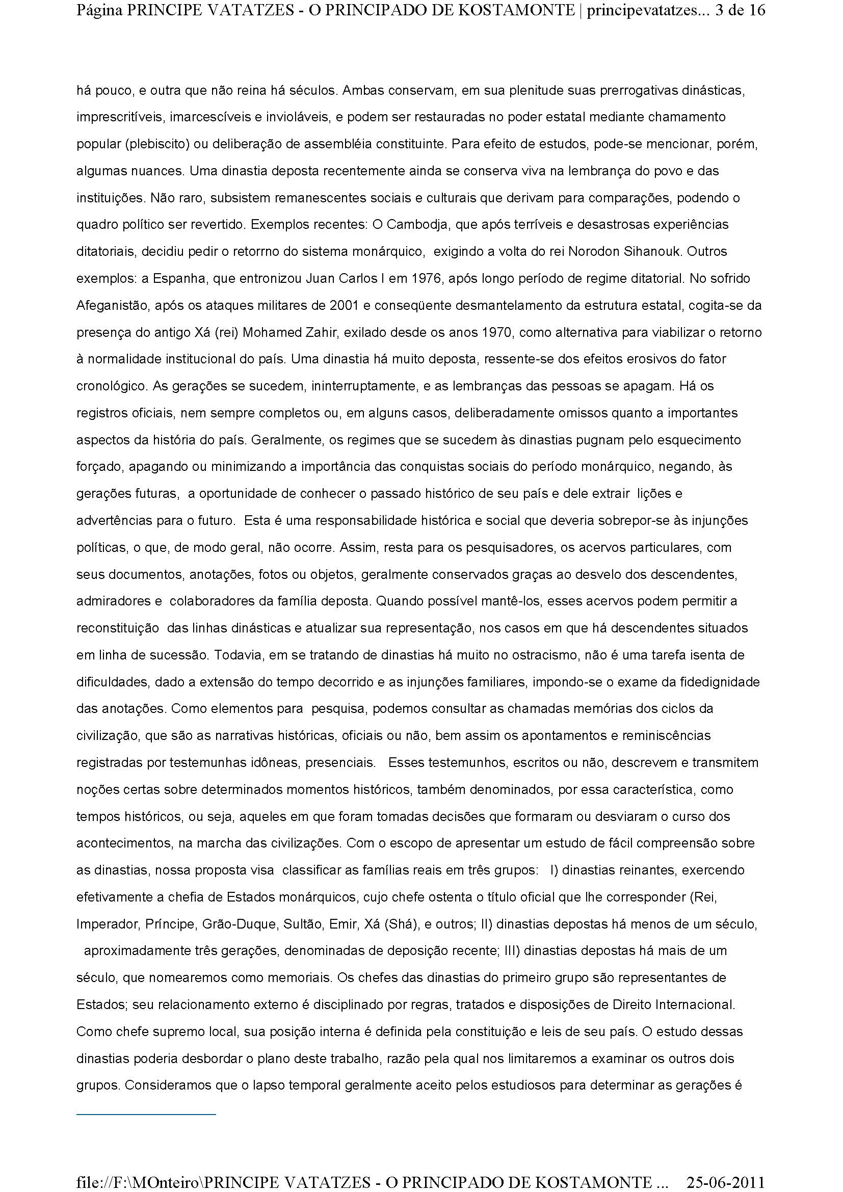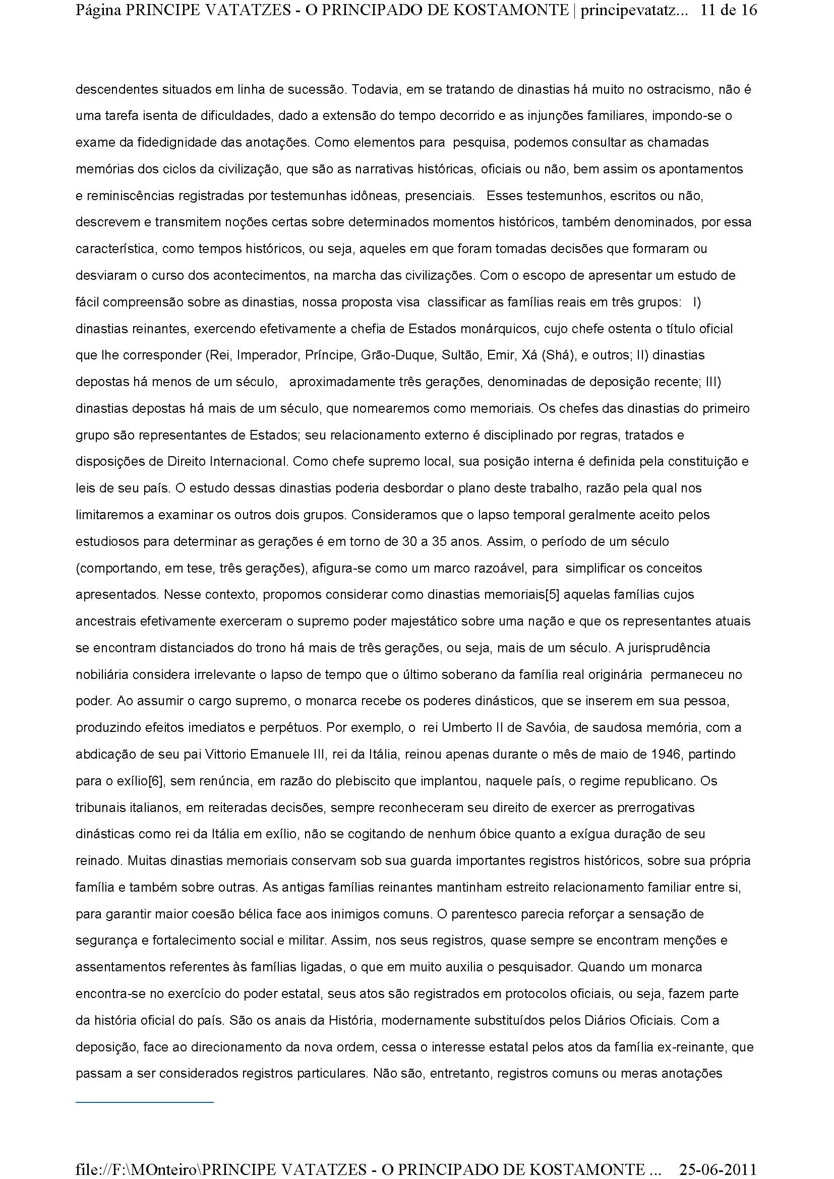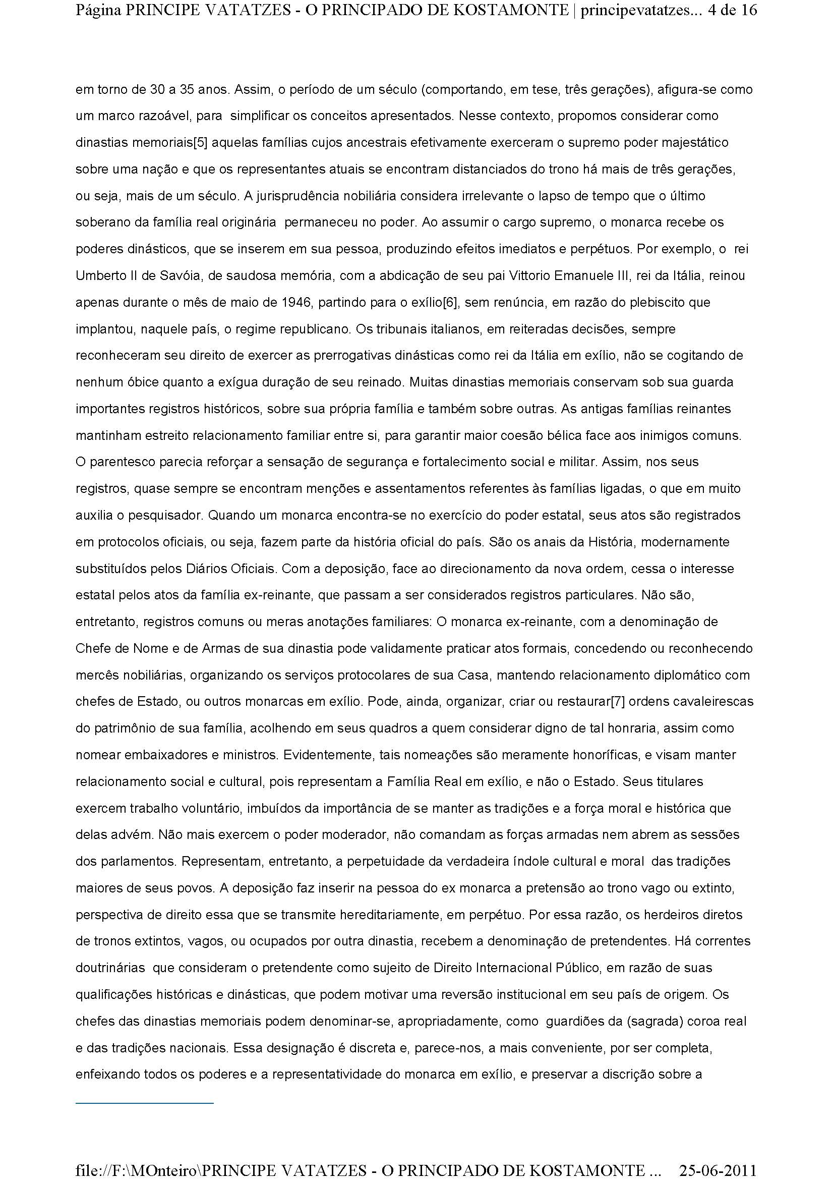Este Principado é Hereditário na pessoa do Senhor Dom Armando I Principe Vatatzes - Vatatzes e seus herdeiros.