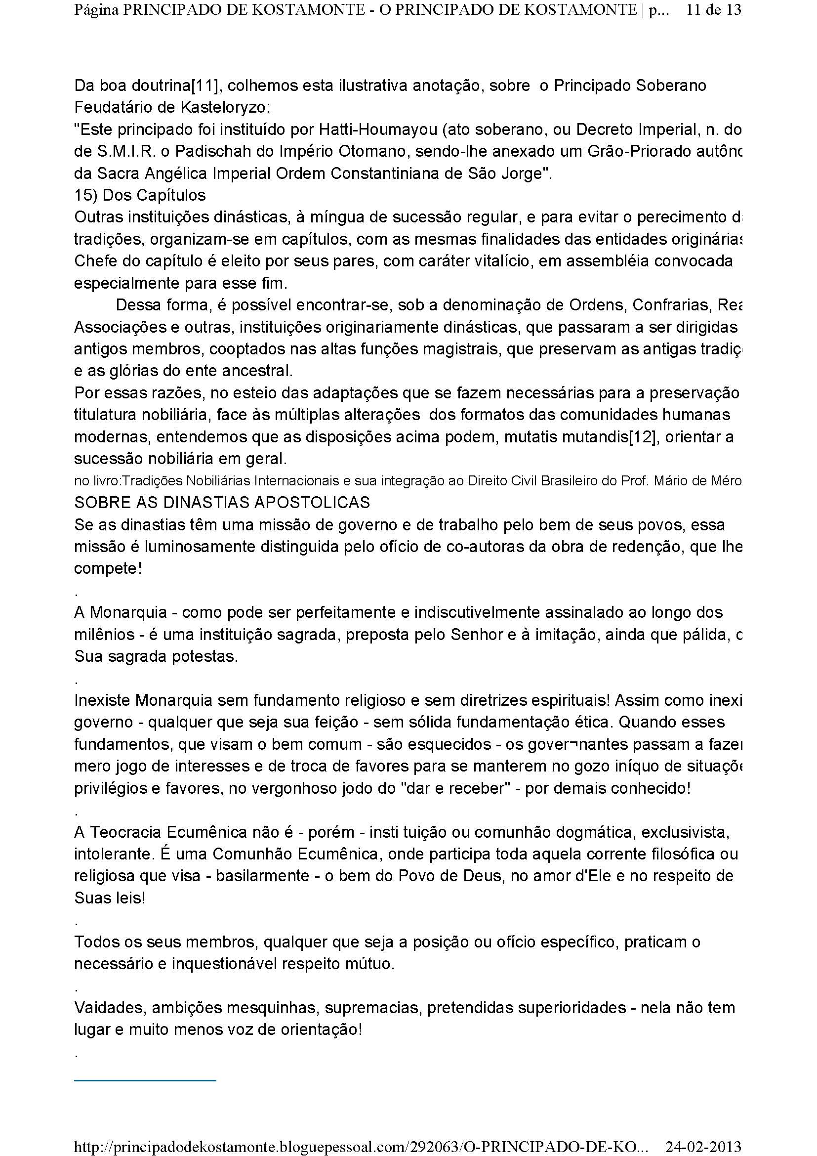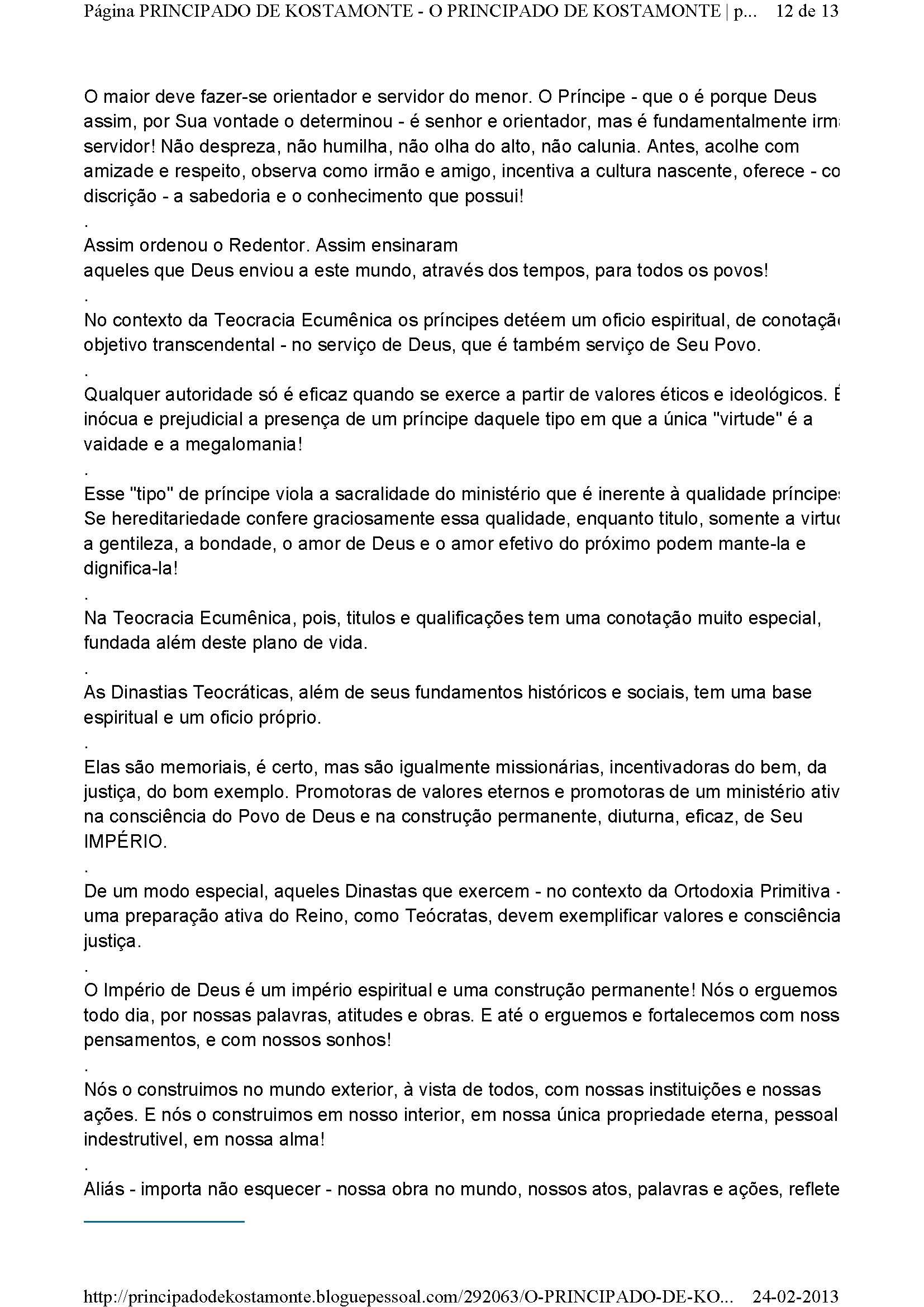 «Este Principado foi criado sob a autoridade do Santo Sinodo Da Igreja Apostólica Católica Ortodoxa, de acordo com a lei e os seus estatutos canónicos para premiar o trabalho de SUA ALTEZA REAL EM FAVOR DA IGREJA