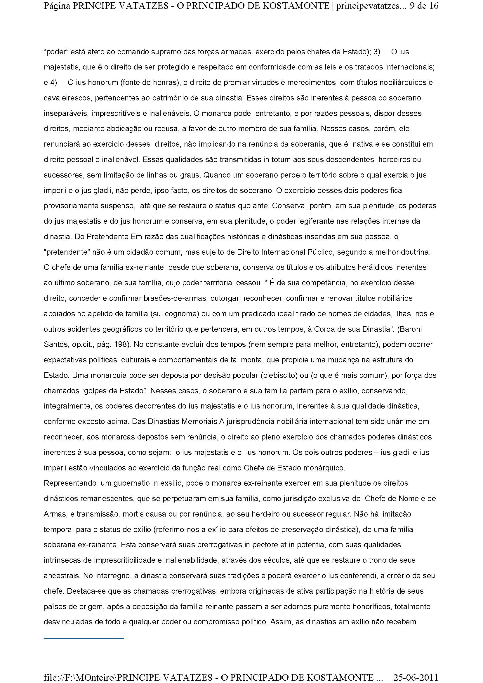 ao último soberano, de sua família, cujo poder territorial cessou. “ É de sua competência, no exercício desse
