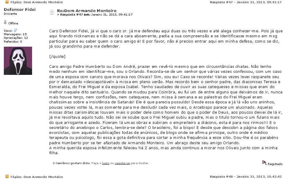 posição (que se alinha a exorcistas de renome como Fortea e Amorth) e a posição de armandos e gamas.»