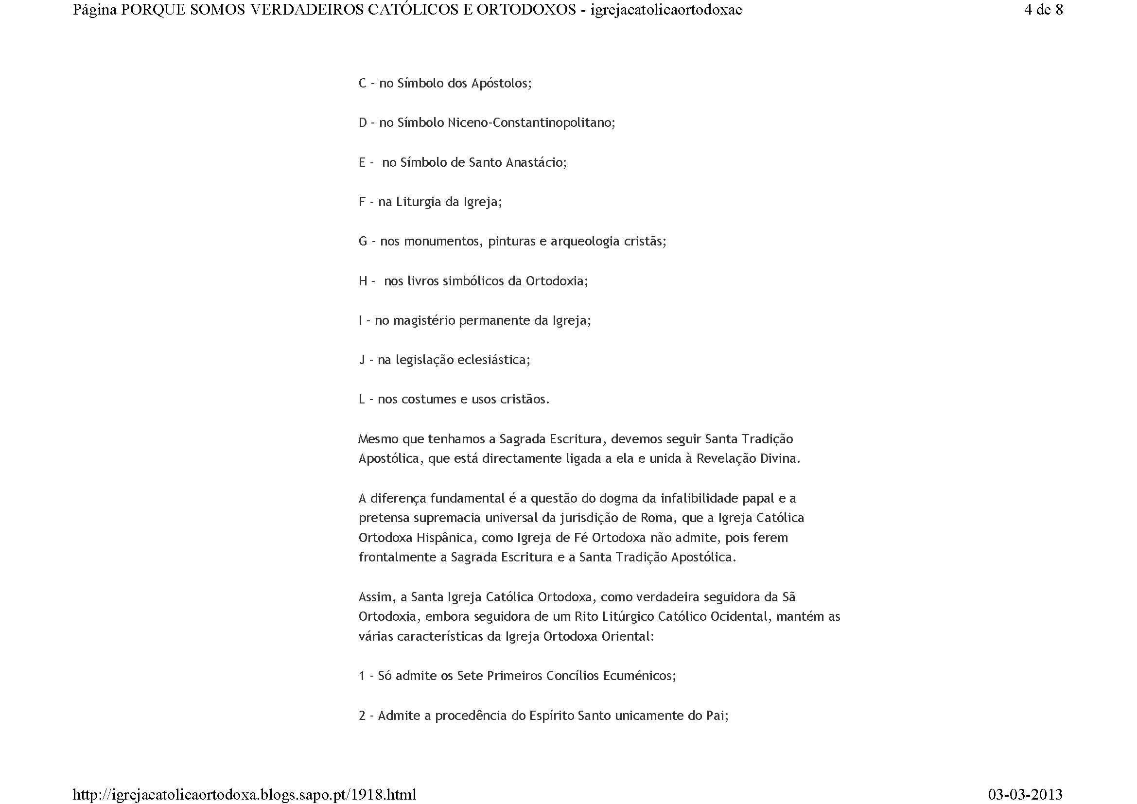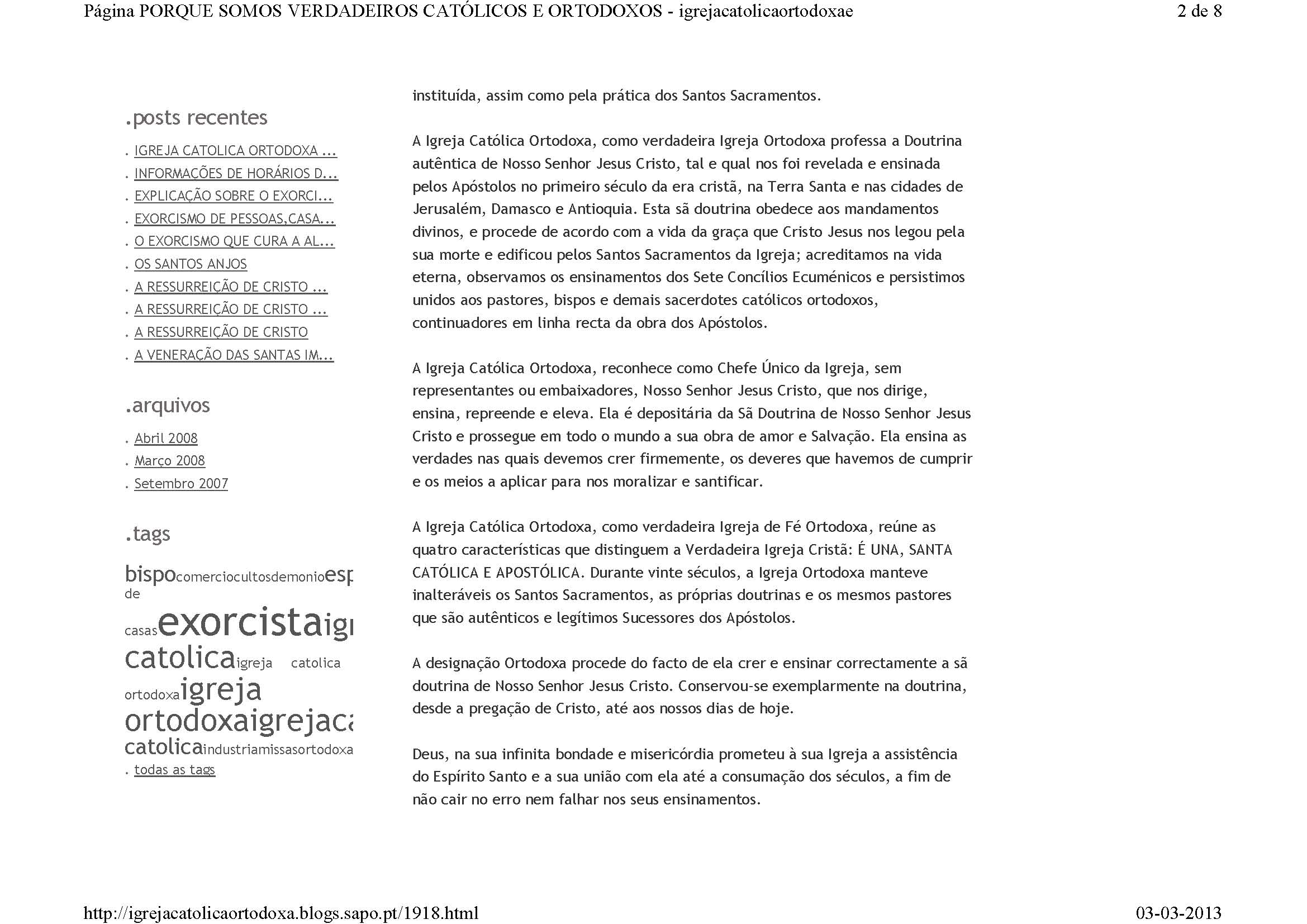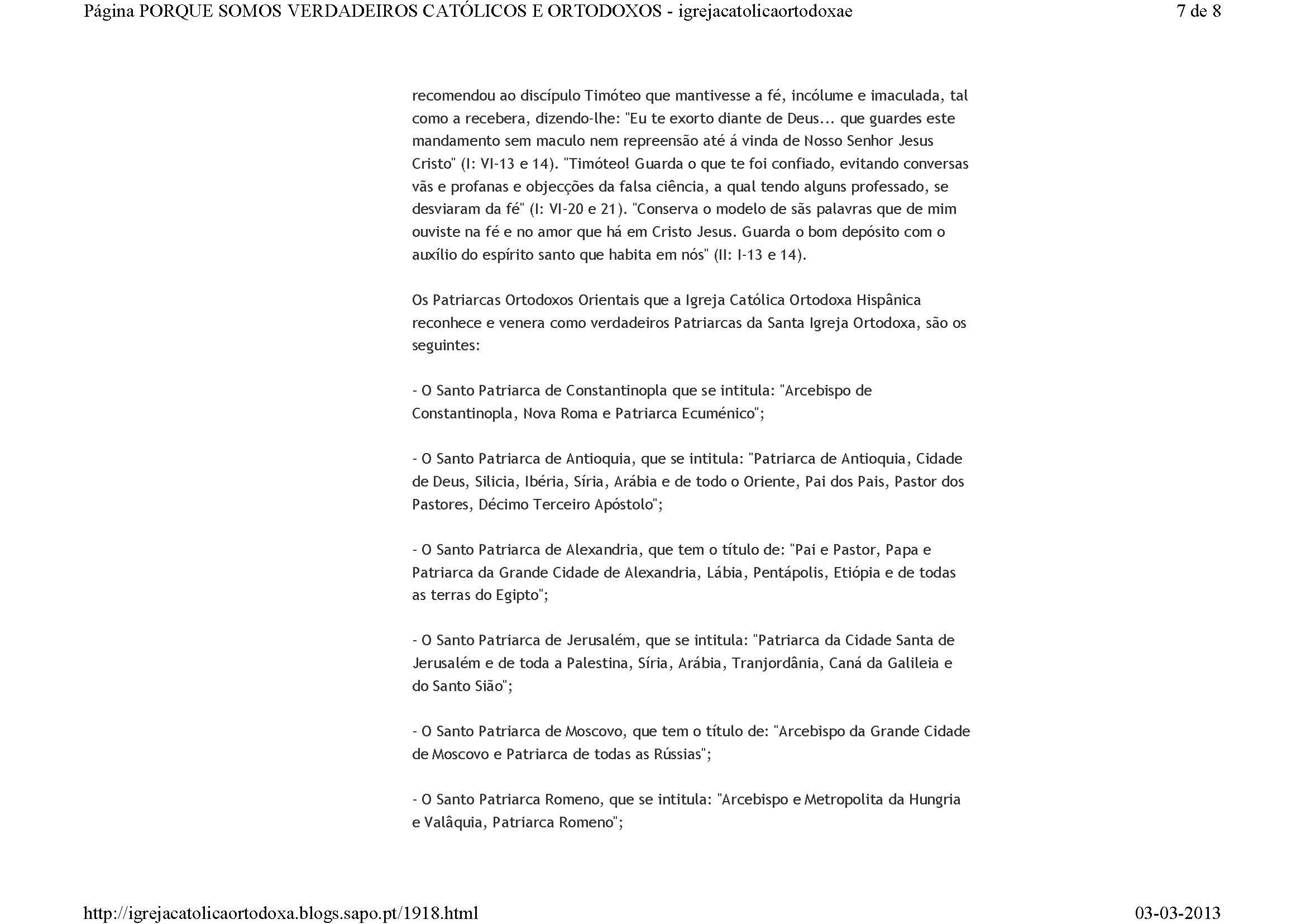 da IGREJA APOSTÓLICA CATÓLICA ORTODOXA,