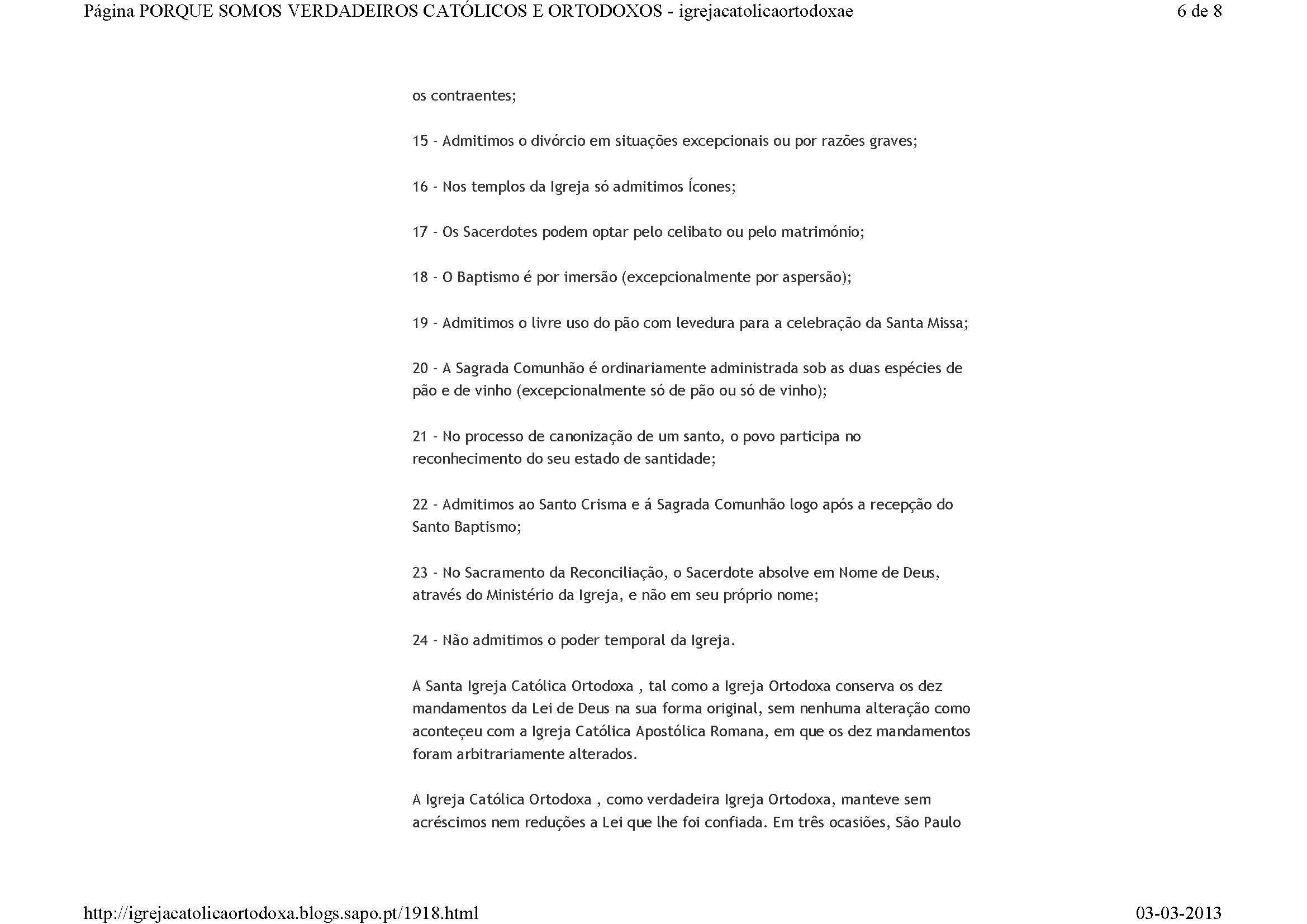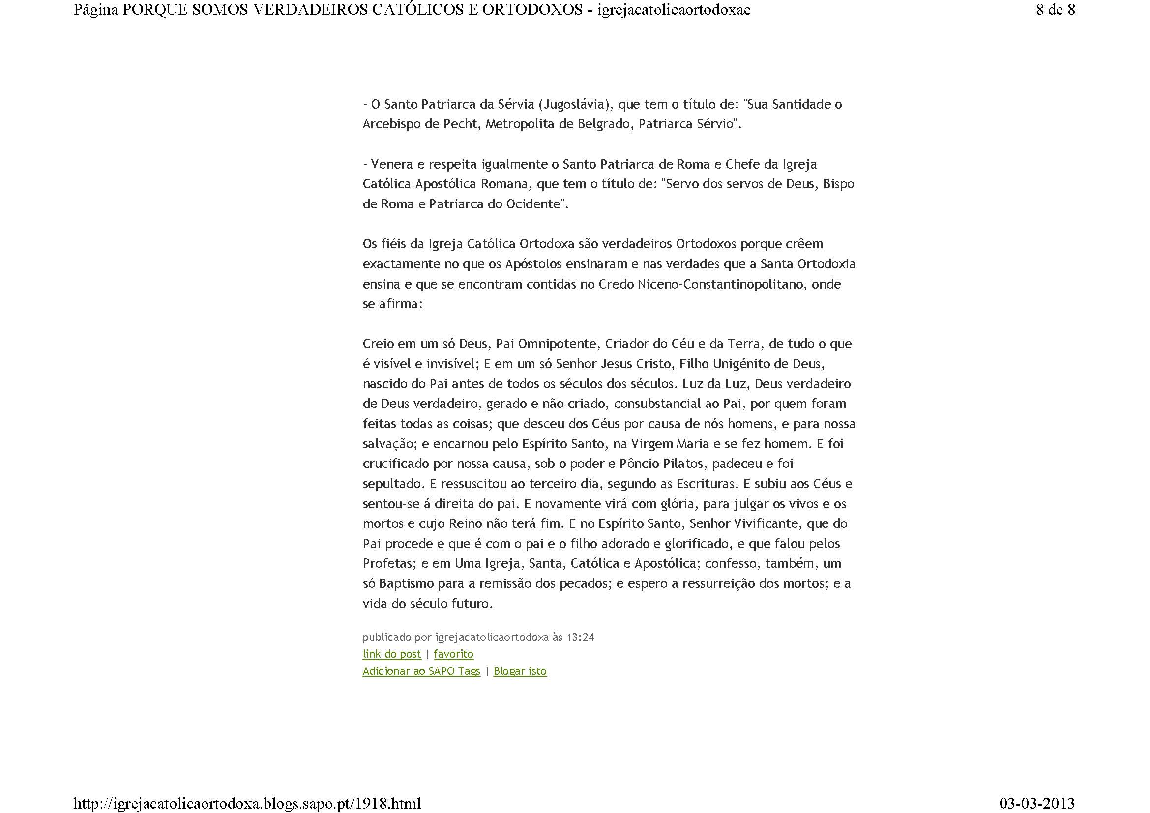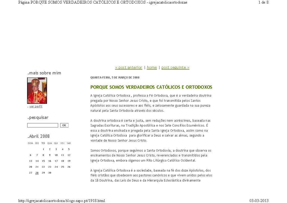 da IGREJA APOSTÓLICA CATÓLICA ORTODOXA,