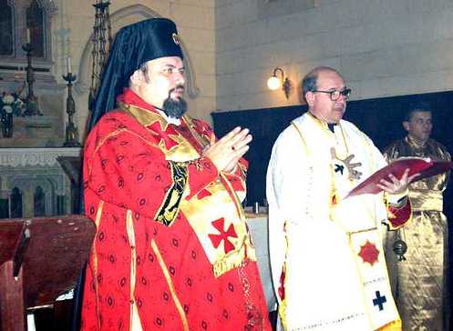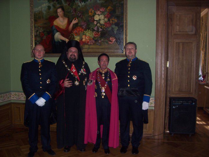 Os Bispos S.B. Mgr. Alejandro e Sua Exª Rev.ma Mgr. Valerian de Silio (Alfredo Mingolla-Montrezza), membros do Parlamento Argentino de Religiões, junto de Sua Alteza Imperial e Real o Príncipe D. Sergio Jesús Vasallo Palelogo Comneno, que veio ao evento junto com uma comitiva internacional integrada por Espanhóis e Norte-Americanos