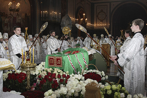 O patriarca foi sepultado em 09 de Dezembro de 2008, na Catedral de Bogoiavlenski, em Moscovo. Conforme informado pela Igreja, no dia 06 do mesmo mês, "o funeral de Sua Santidade, o Patriarca Alexis II, aconteceria na Catedral do Cristo Salvador, e o enterro, de acordo com a sua vontade, seria realizado na Catedral de Bogoiavlenski".