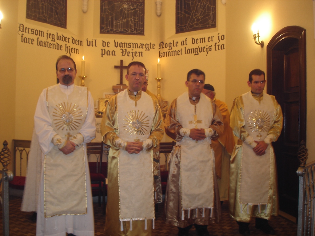 Os Bispos Mgr. Alejandro e Mar Valerian de Silio (Alfredo Montrezza), membros do Parlamento Argentino de Religiões, junto de Sua Alteza Imperial e Real o Príncipe D. Sergio Jesús Vasallo Palelogo Comneno, que veio ao evento junto com uma comitiva internacional integrada por Espanhóis e Norte-Americanos