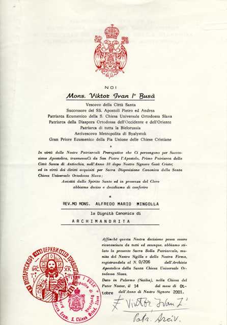 de S.S. Viktor Ivan Busa I, e pela Bula Sinodal, mediante a Unção