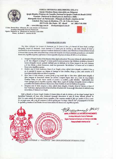 por solene declaração, recebida e aceite pelo Metropolita Mar Athanasios I (Luíz António do Nascimento) e Vigário-Geral do Patriarcado
