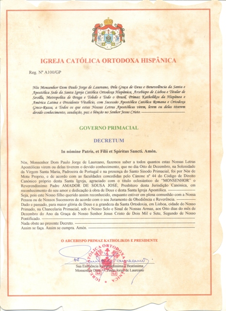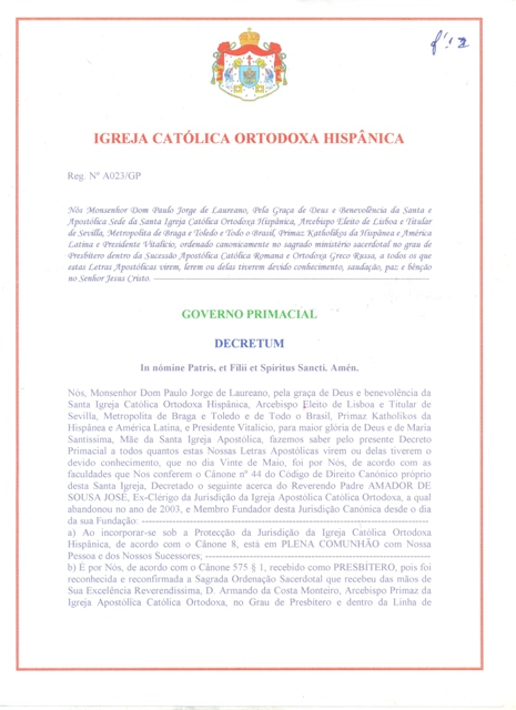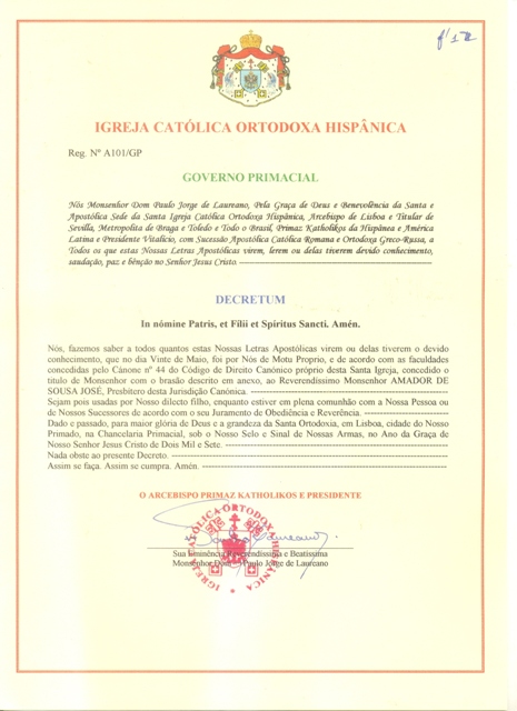 Home / Biografias Gerais / Clero da ICOH / Decretos Primaciais
