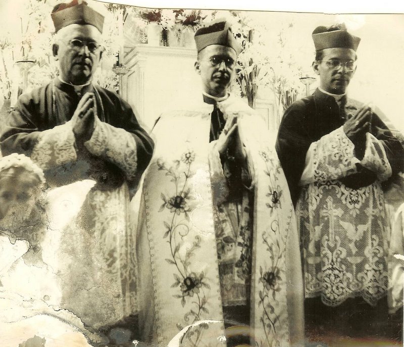 Sagração Episcopal de Sua Exª Rev.ma D. Antídio José Vargas (ao centro), com Sua Exª Rev.ma D. Carlos Duarte Costa (esqª) e Sua Exª Rev.ma D. Salomão Ferraz (dirª)