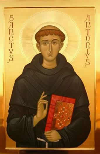 Santo António de Lisboa é tão conhecido pelo seu nome de ordenação, que chamá-lo pelo nome que recebeu no baptismo parece estranho: Fernando de Bulhões y Taveira de Azevedo. Além disso ele era português, nasceu em 1195, em Lisboa. De família muito rica e da nobreza, ingressou muito jovem na Ordem dos Cónegos Regulares de Santo Agostinho. Fez seus estudos filosóficos e teológicos em Coimbra e foi lá também que se ordenou sacerdote. Nesse tempo, ainda estava vivo, Francisco de Assis e os primeiros frades dirigidos por ele chegavam a Portugal, instalando ali um mosteiro. Os franciscanos eram conhecidos por percorrer caminhos e estradas, de povoado em povoado, de cidade em cidade, vestidos com seus hábitos simples e vivendo em total pobreza. Esse trabalho já produzia mártires. No Marrocos, por exemplo, vários deles perderam a vida por causa da fé e seus corpos foram levados para Portugal, facto que impressionou muito ao jovem Fernando. Empolgado com o estilo de vida e de trabalho dos franciscanos que, diversamente dos outros frades não viviam como eremitas, mas saíam pelo mundo pregando e evangelizando, resolveu também ir pregar no Marrocos. Entrou na Ordem, vestiu o hábito dos franciscanos e tomou o nome de António. Entretanto, o seu destino não parecia ser Marrocos. Mal chegou ao país, contraiu uma doença que o obrigou a voltar para Portugal. Aconteceu, porém, que o navio em que viajava foi envolvido por um tremendo vendaval, que empurrou a nave em direcção a Itália. António desembarcou na Ilha da Sicília e de lá rumou para Assis, a fim de se encontrar com seu inspirador e fundador da Ordem: Francisco. Com pouco tempo de convivência transmitiu tanta segurança a ele, que este o designou para leccionar teologia aos frades de Bolonha. Com apenas vinte e seis anos de idade, foi eleito Provincial dos franciscanos do norte da Itália. António aceitou o cargo, mas não ficou nele por muito tempo. Seu desejo era pregar e rumou pelos caminhos da Itália setentrional, praticando a caridade, catequizando o povo simples, dando assistência espiritual aos enfermos e excluídos e até mesmo organizando socialmente essas comunidades. Pregava contra as novas formas de corrupção nascidas do luxo e da avareza dos ricos e poderosos das cidades, onde se disseminaram filosofias heréticas. Ele viajou por muitas regiões da Itália e, por três anos, andou pelo Sul da França, principal foco dessas heresias. Continuou vivendo para a pregação da Palavra de Cristo até morrer, em 13 de Junho de 1231, nas cercanias de Pádua, na Itália, com apenas trinta e seis anos de idade. Ali foi sepultado numa magnífica basílica romana. Sua popularidade era tamanha que imediatamente seu sepulcro tornou-se meta de peregrinações que duram até nossos dias. São milhares os relatos de milagres e graças alcançadas rogando seu nome. Ele foi canonizado no ano seguinte de sua morte por S.S. Gregório IX. Na Itália e em Portugal, por exemplo, ele é venerado por ajudar a arranjar casamentos e encontrar coisas perdidas. Há também uma forma de caridade denominada "Pão de Santo António", que copia as atitudes do Santo em favor dos pobres e famintos. Em Portugal, ele é comemorado numa das festas mais alegres e populares, estando entre as três maiores das chamadas festas juninas. Ele foi canonizado no ano seguinte de sua morte por S.S. Gregório IX. E no ano de 1946, foi proclamado Doutor da Igreja, por S.S. Pio XII.