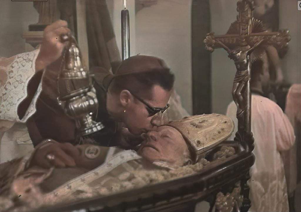 Pinto Filho osculando o anel episcopal de Sua Exª Rev.ma D. Carlos Duarte Costa,