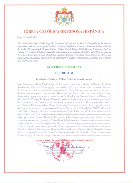 pelo Decreto Primacial A045/GP, de 17 de Junho de 2005.